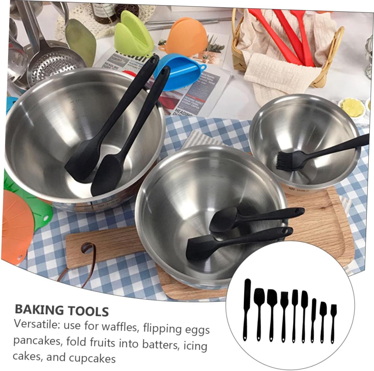 Package List 7 x silicone scrapers 2 x Characteristics - Size: 28.00X3.50X0.30cm/11.00X1.38X0.12in silicone spatula - Color: Black heat silicone spatula. - Material: spatula. - Designed with hanging hole in the bottom to drain water without take up too much space in your cabinet kitchen utensils. - Great for flipping, stirring, scraping and folding the most kinds of food without scratching your coated cookware baking utensils. - Whether baking, decorating, stirring, sautéing, or scraping, This rubber spatula set will help you to handle a multitude of tasks silicone tools. - Made of food grade silicone, it will not get or produce , for long time use baking tools. - It is heat , will not melt, warp, discolor or release any substances baking spatula.Goods Informationcream spatula Are you looking professional, yet baking scraper? Are you in search of a sturdy, trustworthy tool that can do multiple jobs at once? , ! Our baking scraper is one of the of you