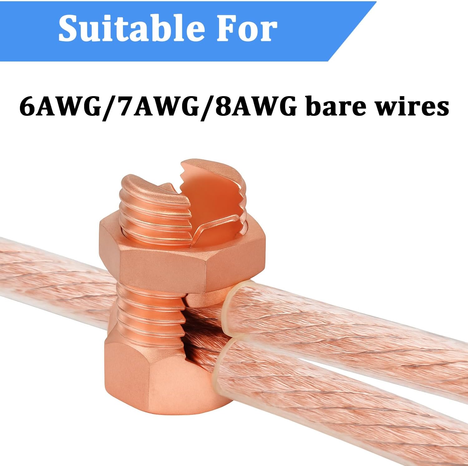 Ensure a safe, durable, and conductive electrical connection with our Copper Alloy Split Bolt Connector Set. Each connector is precision-engineered for grounding and bonding copper wires, providing stability and corrosion resistance even under harsh environmental conditions. โ๏ธ High-Strength Copper Alloy Construction Made from high-conductivity copper alloy, these split bolt connectors deliver outstanding rust resistance and long service life. Their solid structure maintains excellent electrical performance in hot, cold, or humid weather, making them ideal for both indoor and outdoor installations. ๐ Reliable Grounding Performance The copper grounding clamp ensures a tight and secure wire connection. It is designed to connect copper wires safely and efficiently, preventing loosening and ensuring consistent conductivity over time. These ground wire connectors are built to meet professional electrical standards. ๐งฐ Wide Wire Compatibility & Easy Installation Suitable for 6AWG, 7AWG, and 8AWG bare copper wires, the split bolt wire connector is simple to use โ just insert and tighten for a firm hold. Perfect for electric fence systems, grounding networks, and power distribution setups. ๐ฆ Complete and Practical Set Each package includes 5 pieces of TJ copper split bolt grounding clamps, ready for immediate use. Whether youโre working on residential, industrial, or solar grounding projects, this copper split bolt connector kit ensures safety, reliability, and long-lasting performance.