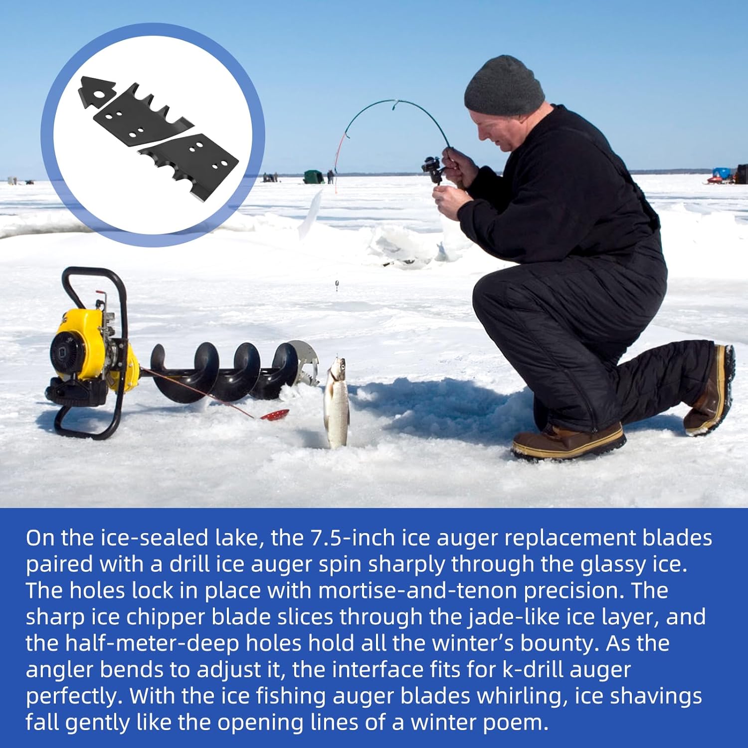 7.5 Inch Ice Auger Replacement Blades, Compatible with K-Drill Ice Fishing Augers IDRL08 & IDRL75, High-Strength Stainless Steel for Smooth & Fast Ice Cutting