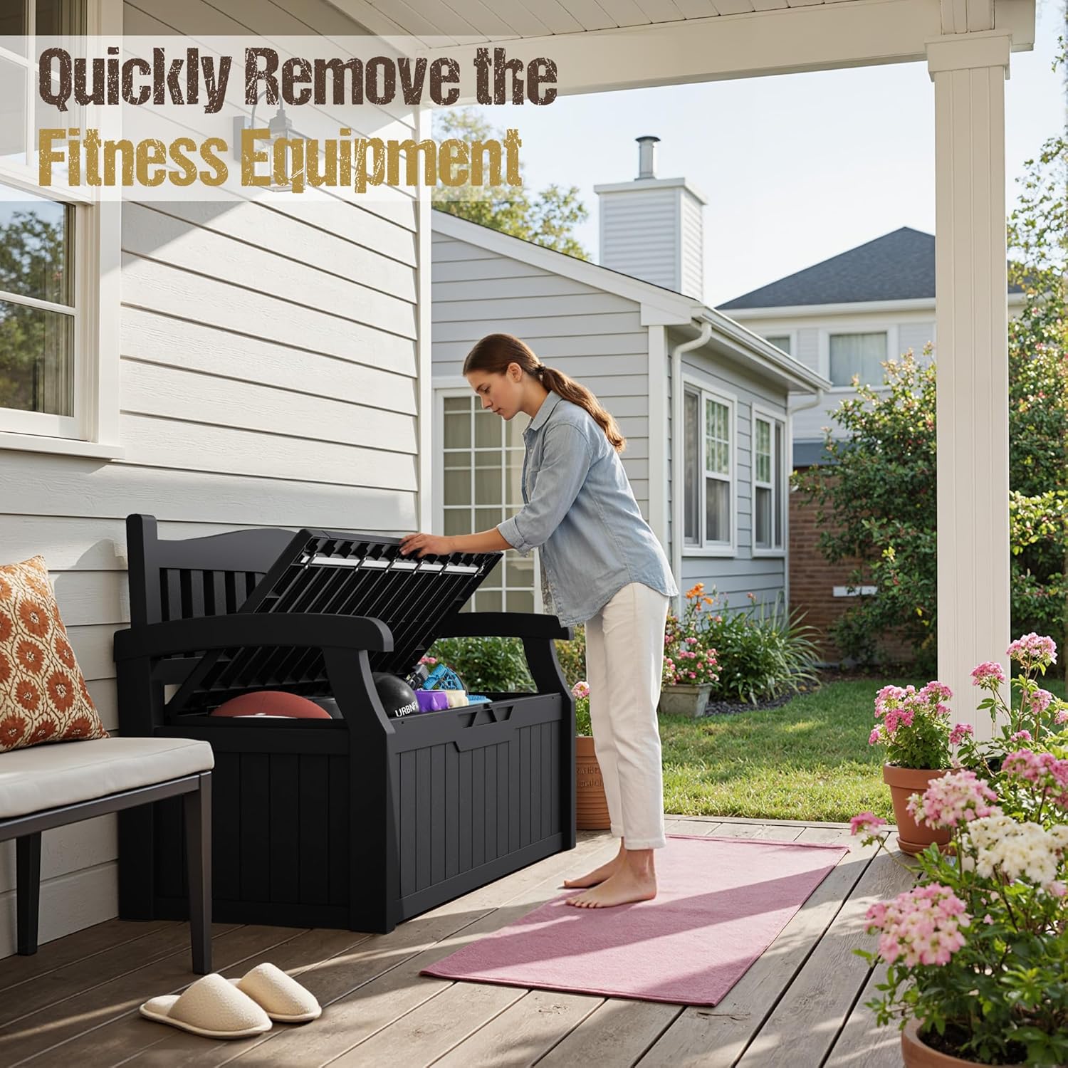 Product Description:Upgrade your backyard, patio, or poolside with the 80-Gallon Storage Bench—the ultimate fusion of function and style. This isn't just a storage box; it's a stylish seating solution that secretly organizes your entire outdoor living area. Crafted from rugged, weather-resistant resin, it boasts the strength to handle heavy use and the elegance to complement most décor. Imagine effortlessly storing unsightly items while providing extra seating for guests—all with a single, sleek piece of furniture. It’s the smart, stylish, and practical answer to your outdoor storage needs.Specifications:Material: High-Density ResinColor: Dark BlackOverall Dimensions: 53" L x 24.6" W x 9.3" HStorage Capacity: 80 GallonsWeight Capacity: 600 lbsPackage Weight: 44 lbsWhat's in the Box?All Storage Bench ComponentsStep-by-Step Instruction ManualNote: Product color may vary slightly from the images due to photographic lighting or your monitor's display settings. We guarantee the highest quality and consistency in our products.