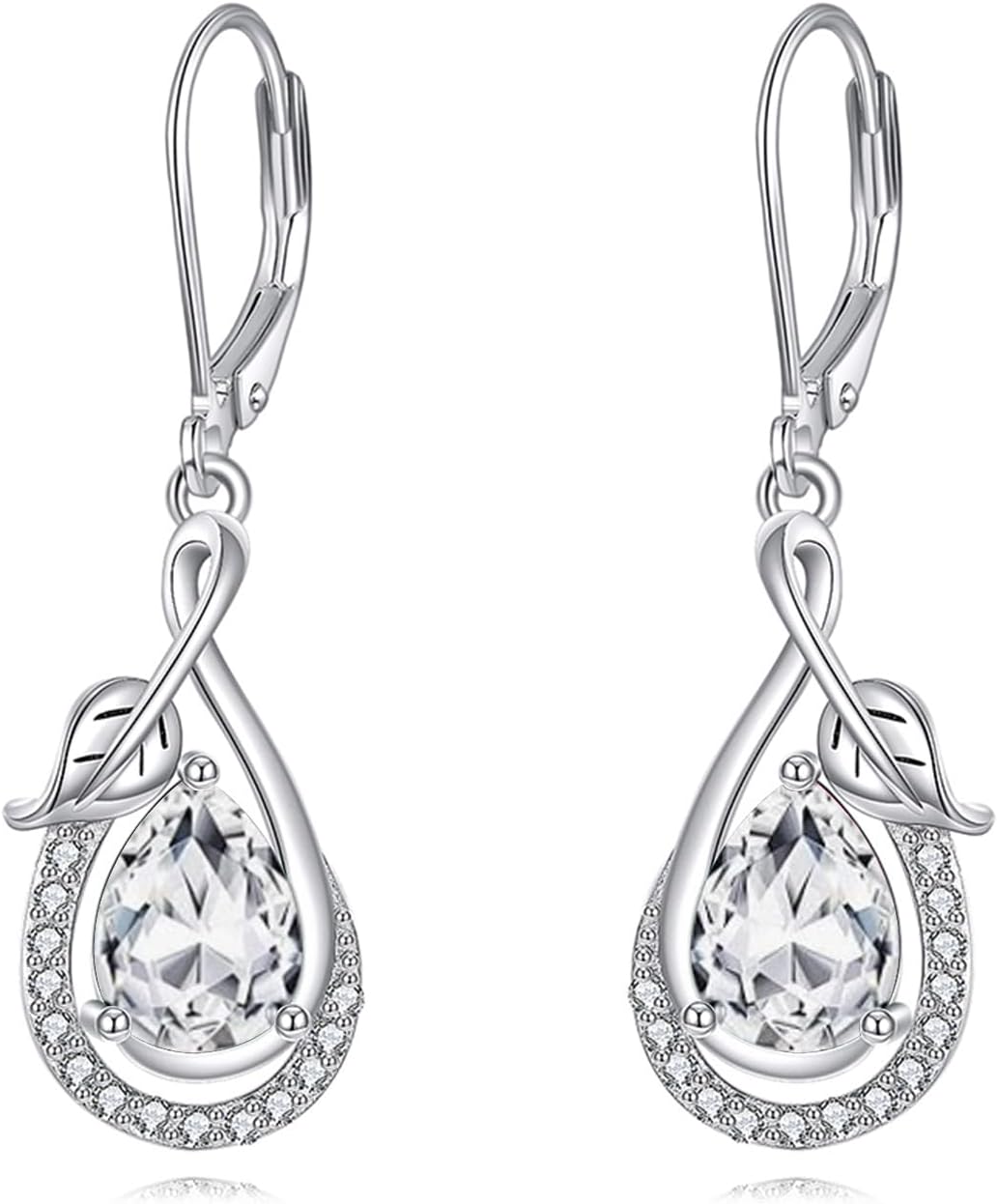 925 Sterling Silver Teardrop Gemstone Earrings Created Birthstone Dangle Drop Earrings Infinity Leaf Leverback Earring Birthday Christmas Jewelry Gifts for WomenThese 925 sterling silver gemstone earrings, each set with a pear cut gemstone, create a beautiful and elegant pair. These infinity leaf earrings are also set with sparkling 5A-grade cubic zirconia for an even more refined look.Details: Highly polished finish,nickel-free,lead-free,cadmium-free and hypoallergenic for sensitive skin.Suitable for many occasions:Mother Gift Wife GiftGrandma GiftFamily GiftBest Friend GiftGraduation GiftBride GiftChristmas GiftThanksgiving Day GiftBirthday GiftEngagement/Wedding GiftAnniversary GiftS925 silver infinity earrings: Material: 925 sterling silver Color: white Comes with a beautiful gift box.