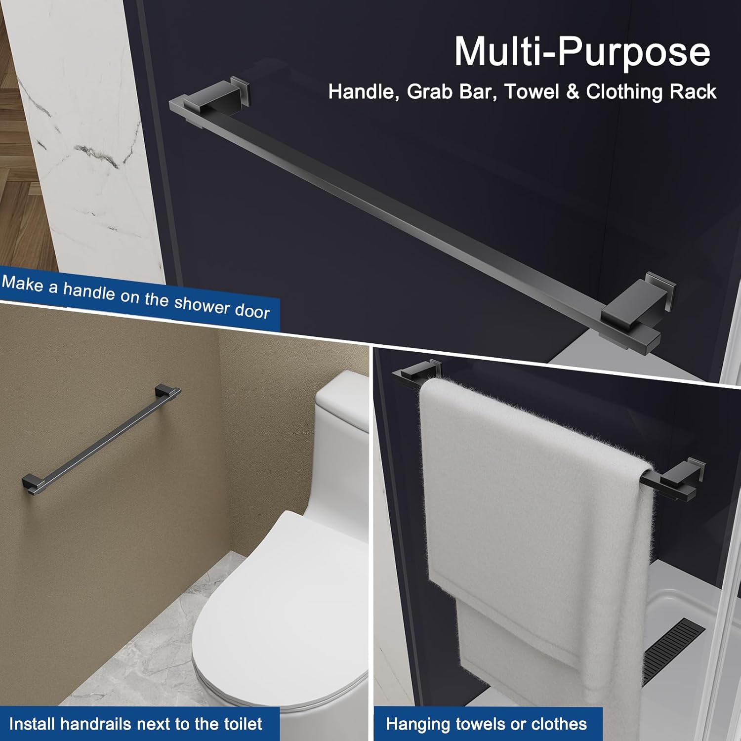 • Multi-Functional Use – Can be mounted vertically as a shower door pull handle, or horizontally as a grab rail/towel bar, also suitable beside toilets for added safety.