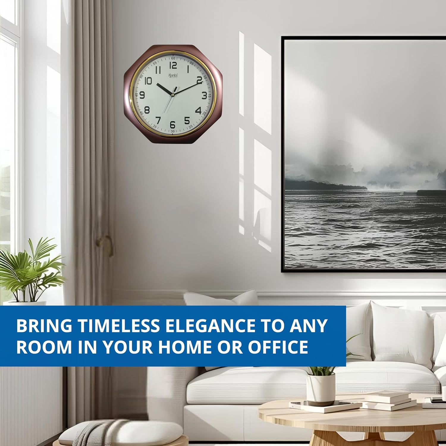 From the world of Ajanta exclusively made Octagon Shape wall clock for your home and business use.The clock works on a single battery and has a very good quality built. And it's unique colors make the looks and ambiance of your home and office a worth looking at.