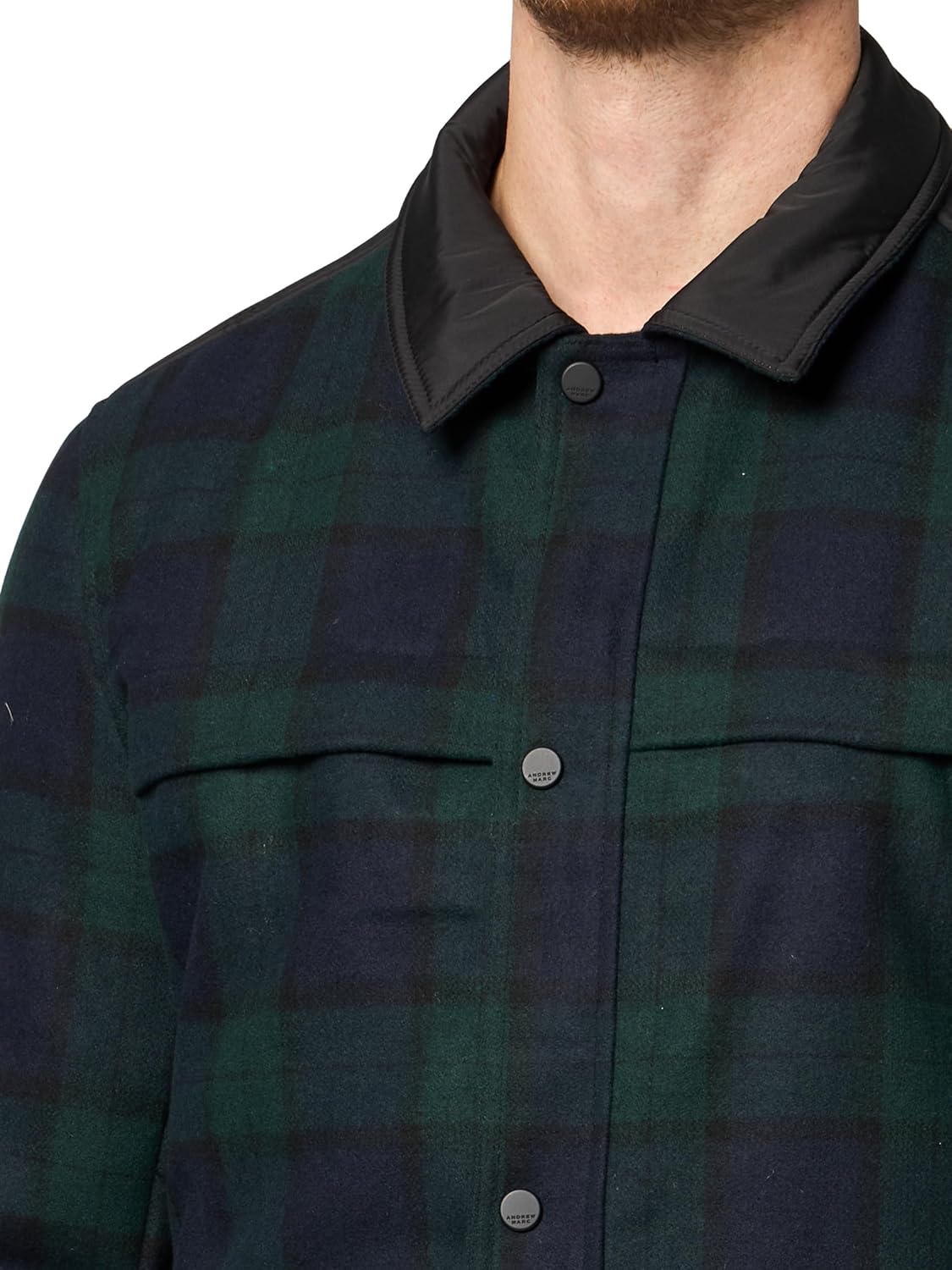 This Andrew Marc Men's Outerwear Shirt Jacket is a Plaid Light Fill Quilting Long Sleeve Patterned