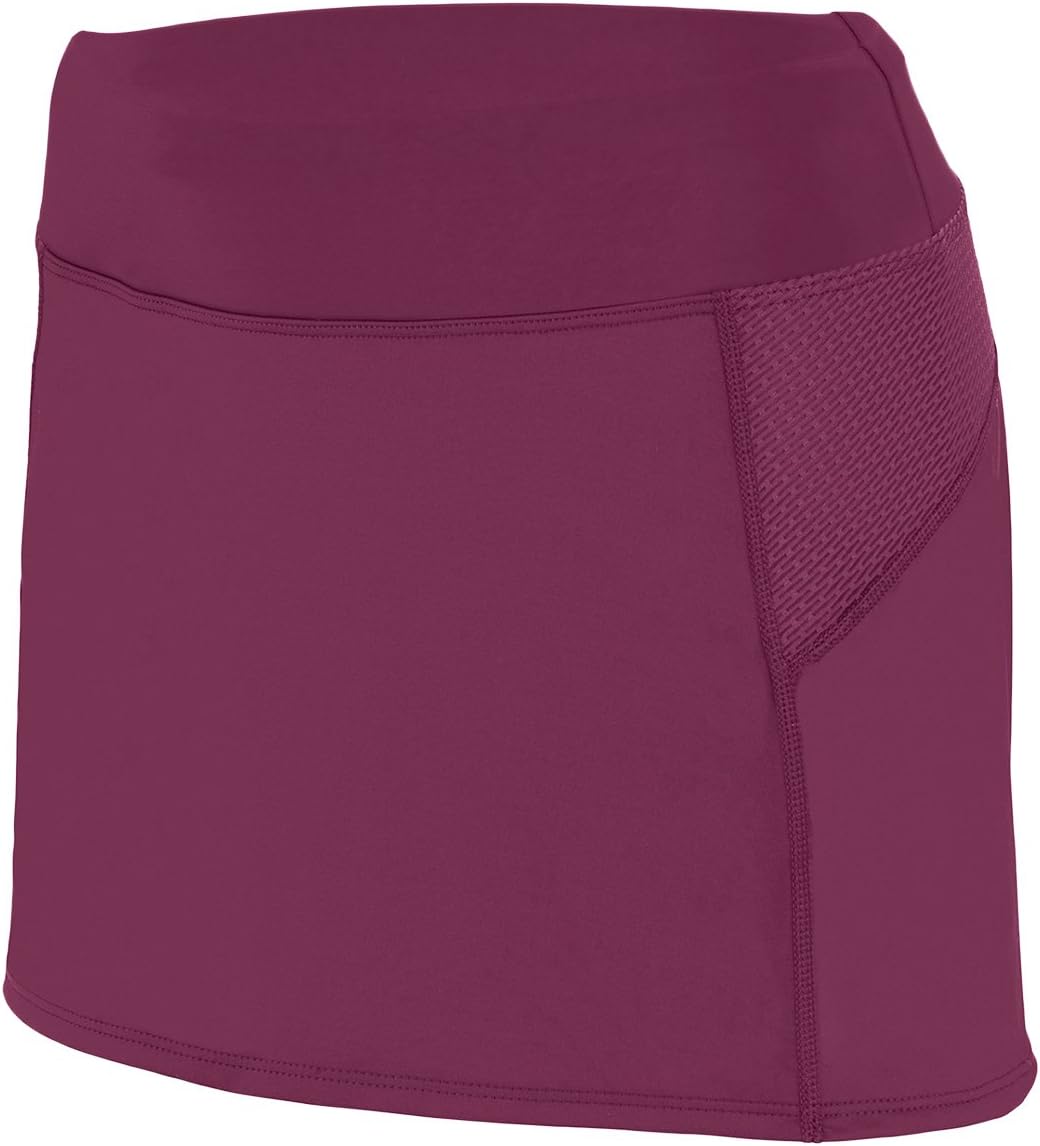 Lightweight 90% polyester/10% spandex knit skirt * Graphite Heavyweight 90% polyester/10% spandex knit inner short * 94% polyester/6% spandex maze mesh yoke * Wicks moisture * Odor resistant * Ladies' fit * Tagless label * Low rise, wide flat waistband for secure fit and comfort * Hidden possession pocket in waistband * Flatlock stitching provides comfort and helps prevent chafing * Longer length at back of skort for added coverage