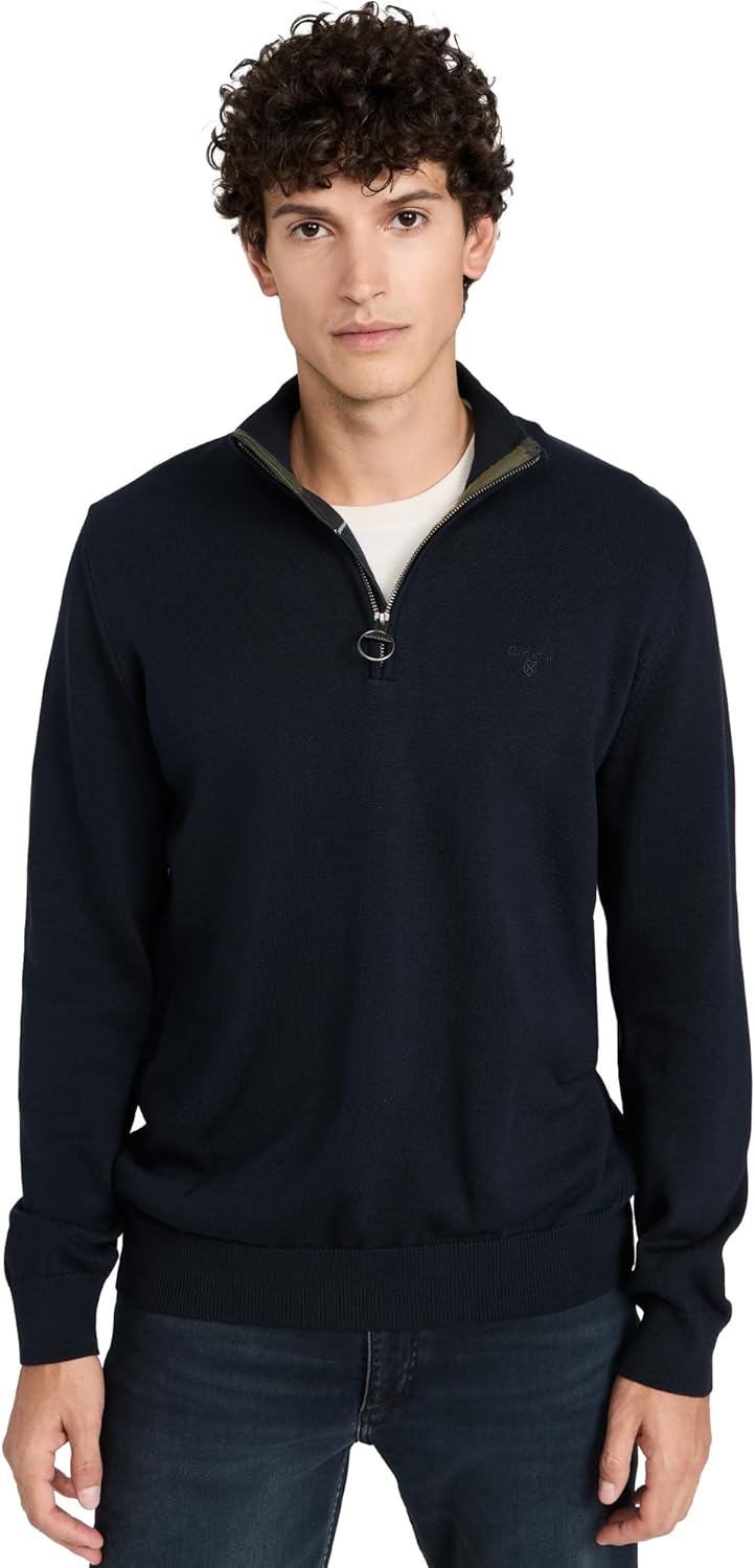 Barbour Essentials Knitted Half zip with ribbed detail to neck, cuffs and side panel.