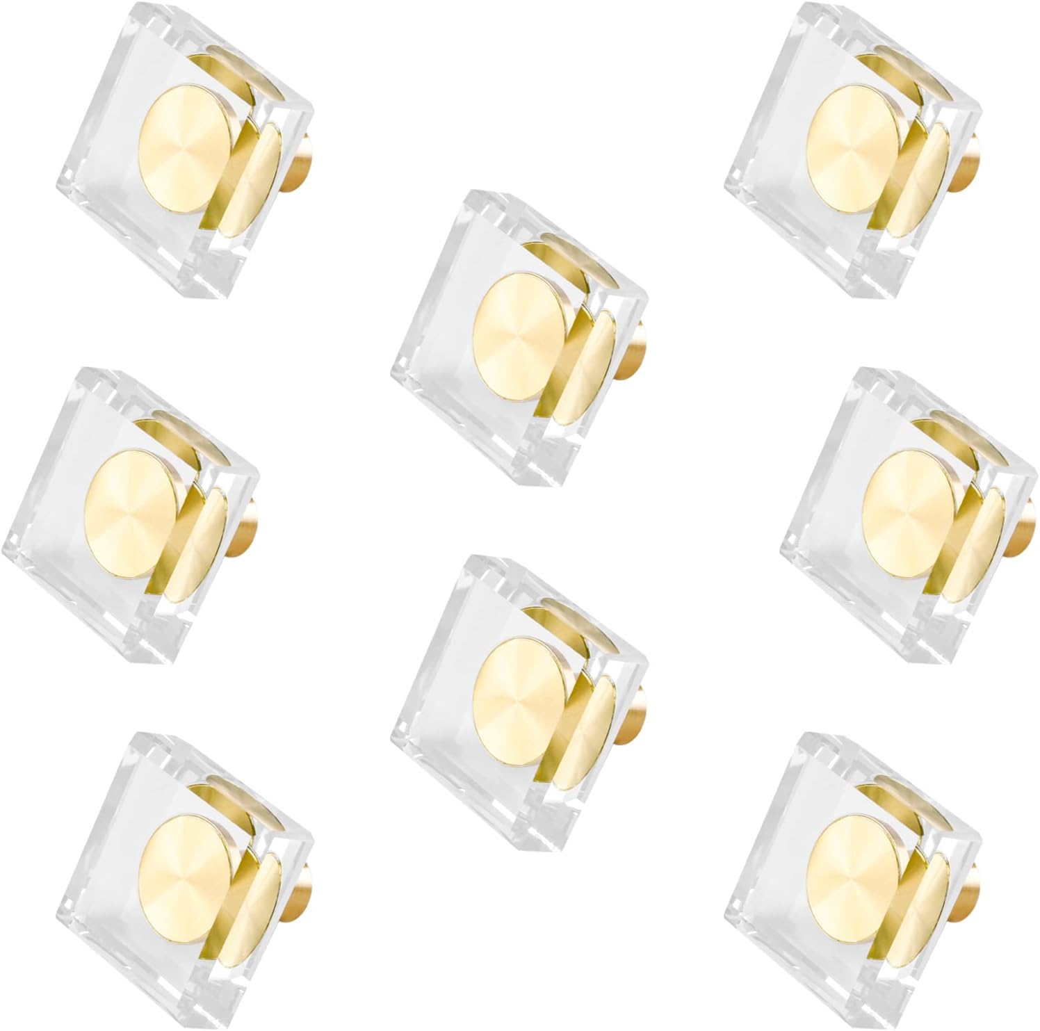 Features 1.This single-hole knob is crystal clear, made of glossy crystal glass, sturdy and stable brass base. 2.Simple geometric design, presenting a light luxury fashion style, adding decorative effect to your home. Specifications Material: crystal + brass Size:30mmx27mm/1.2"x1.1"(R*H) Color: Gold Package Contains 16 x square crystal knobs. (Screws included) Notices 1.Since the size is manually measured, please allow an error of 1-2mm 2.The color of the product may vary slightly due to photography & your screen