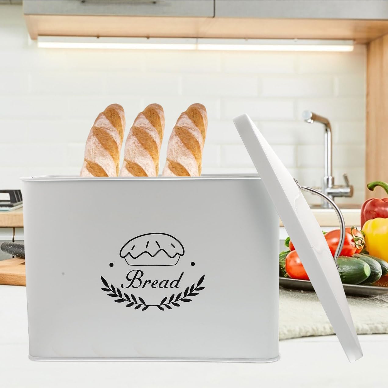 Package Include 1 x Bread Box Characteristics -Material:Iron -Size:33.00X23.00X18.00cm/12.97X9.04X7.07in -Color:White -Product Info:Bread box -The bread box has good airtightness, which can prevent excessive moisture in the air from entering the box to maintain the taste of the bread kitchen rice holder. -The bottom of the bread box is flat, which can make it place on the table firmly and reliably iron rice bucket. -The bread box that made of iron is extremely strong, which is not easy to deform and break metal rice container. -It can be used in many occasions, such as kitchen, homes, bakeries, coffee shops and other places bread container. -The appearance of the bread box is fashionable and creative, which can decorate your kitchen grain container.Goods Informationkitchen bread holder Do you buy of bread and snacks for your ? But when they are looking for these snacks, they will the kitchen you just took care of.kitchen supplies Does this make you feel irritable? Have you found a suitable solution to this problem? I sincerely recommend our bread storage box, which allows to easily find snacks without messing up the kitchen at the same time