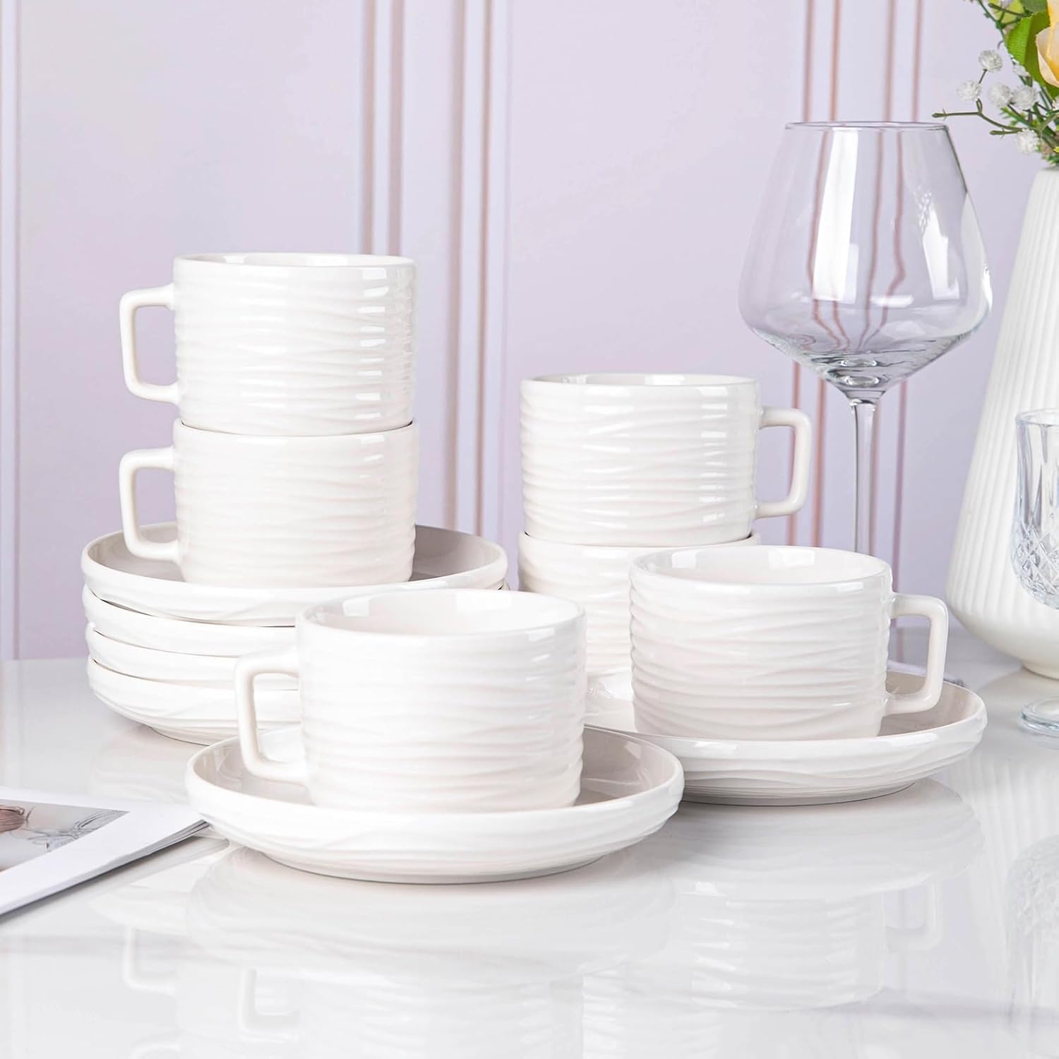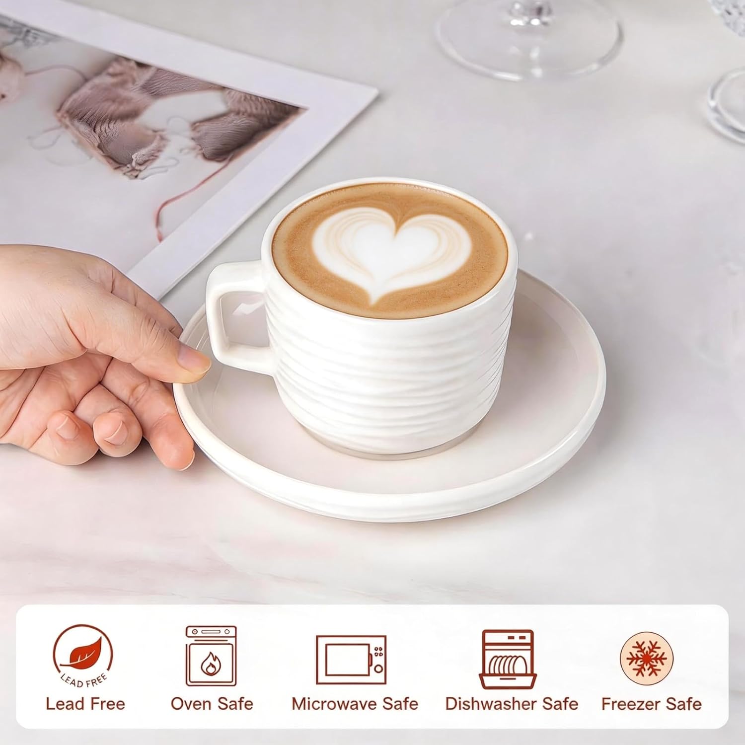 | Set Name | Ribbed Texture Cappuccino Cups with Saucers (6 Piece) |