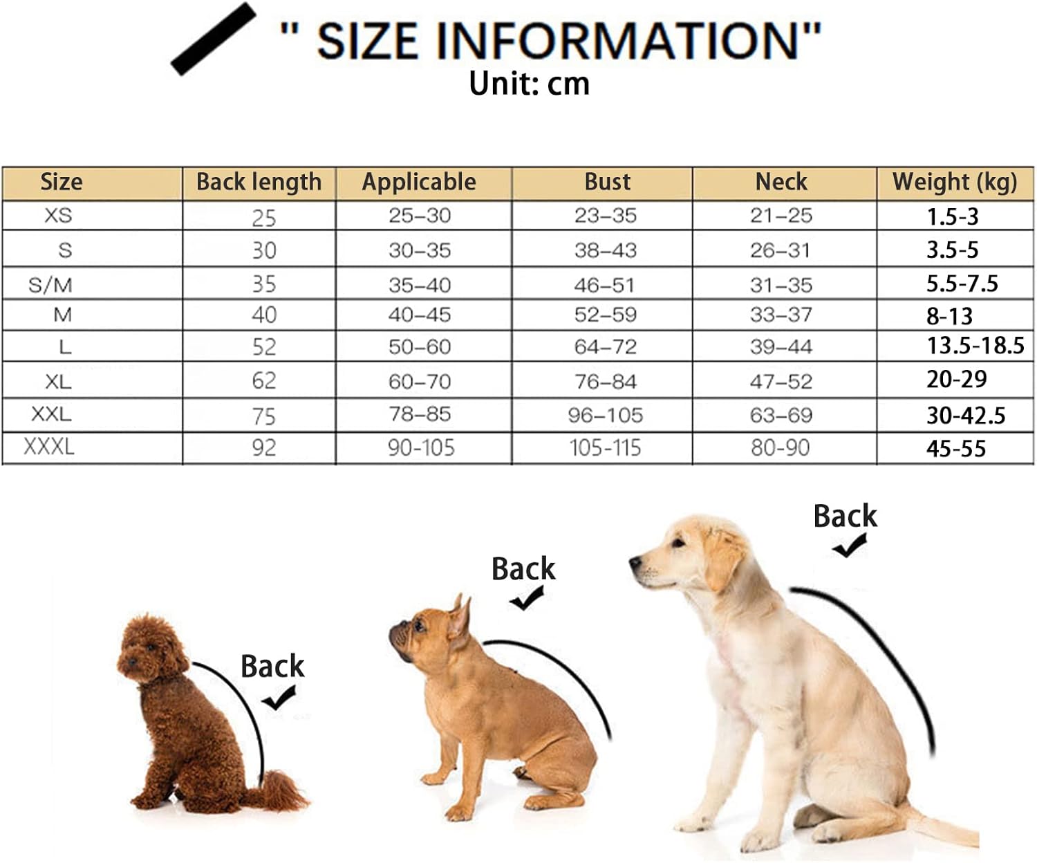 🌂Waterproof!! Comfortable!! The dog raincoat conforms to the body of dogs while preventing water from entering,which can better keep your dog clean. And the bright colors and Jacket style make your puppy cooler and cuter.100% Polyester fabric provides good breathability and windproof. The edge of the slicker is covered with reflective strips to ensure that your dog has high visibility in dark or rainy weather.The built-in leash hole on the collar allows you to leash the dog while walking in the rain easily.🌂Product Details:Department: DogWeight: 0.25kg/0.55lbsMaterial: polyesterColor: Yellow,Orange,Blue 1,Pink,Blue 2,RedSize: XS(1.5-3),S/M(3.5-5),S(5.5-7.5),M(8-13),L(13.5-18.5),XL(20-29),XXL(30-42.5),3XL(45-55)🌂Package Including:1*Dog raincoat🌂Note:Due to manual measurement, please allow 1inch/ 2.5cm error on size.