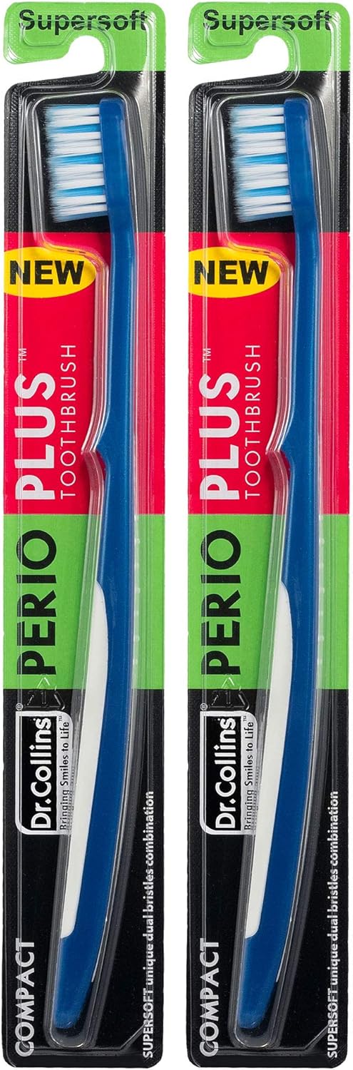 Dr.Collins Perio Plus Toothbrush features a unique new compact brush head design to deliver a soft yet powerful brushing experience. Densely tufted longer ultra-fine polyester bristles at the center provide a more aggressive cleansing while the super-fine bristles on the edges minimize gum irritation. Together, this Ultra-soft bristle combination offers an effective cleaning experience, all in a comfortable compact size.