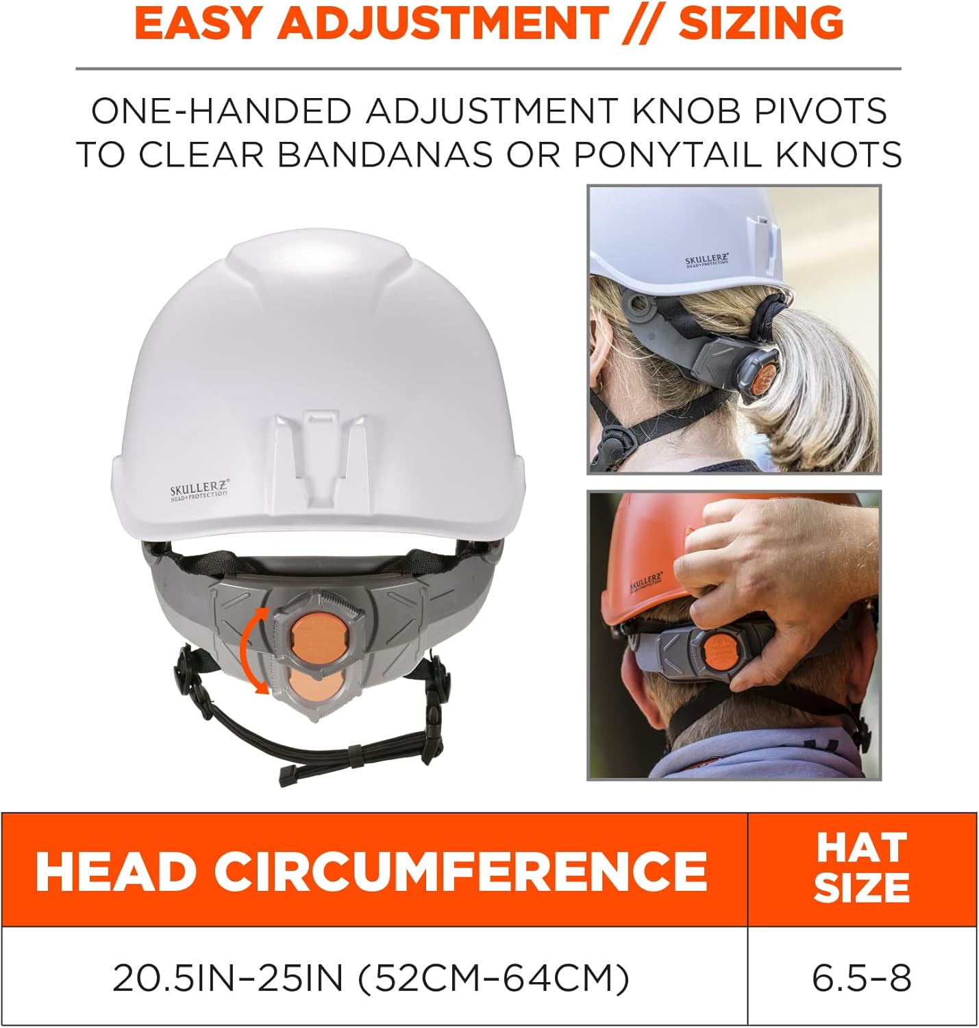 The Skullerz 8974 Type 1 Safety Helmet is a Class E Safety Helmet with 6-Point Suspension. This helmet provides lightweight and comfortable head protection designed to shield the all sides of the head from falls, dropped objects or bumping into stationary objects. A chin strap ensures the helmet remains secure to the wearer's head upon impact or sudden movement. The suspension and shell design of this helmet provides added side, front and back protection. This increased coverage meets side impact testing requirements of EN12492: 2012 4.2.1.2, 4.2.1.3 and 4.2.1.4. The safety helmet also meets standard Class E helmet requirements for ANSI/ISEA Z89.1-2014, CSA Z94.1-15, Type 1, Class E standard. A smaller, low-profile brim improves the wearer's field of vision ”particularly when looking up. A padded, moisture-wicking and odor-resistant sweatband and top pad lines the sides, forehead and top interior, and is removable for easy replacement.
