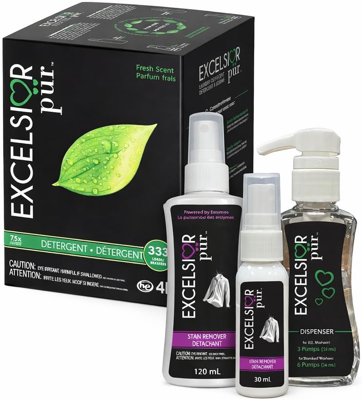 Excelsior HE Concentrated Liquid Laundry Detergent with Stain Remover, Removes 333 Loads for Cleaning Clothes, Phosphate-Free, Solvent-Free, Fresh Scent, 5L…
