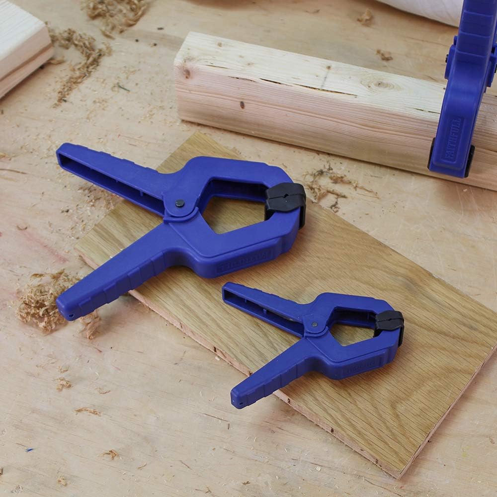 Faithfull FAISPCL3 Spring Clamps are ideal for all your general purpose clamping needs, from holding material whilst fixing, to simple tasks such as securing sheeting or tarpaulins.They are easy to use with a contoured grip for one handed operation. The clamp heads will self-adjust to suit the thickness of the material being clamped.Made from high strength engineering plastic with a durable long life spring.Supplied as a pack of 4 clamps.Description: Spring ClampCapacity: 75mm (3in)Clamping Force: 15kgQty: 4