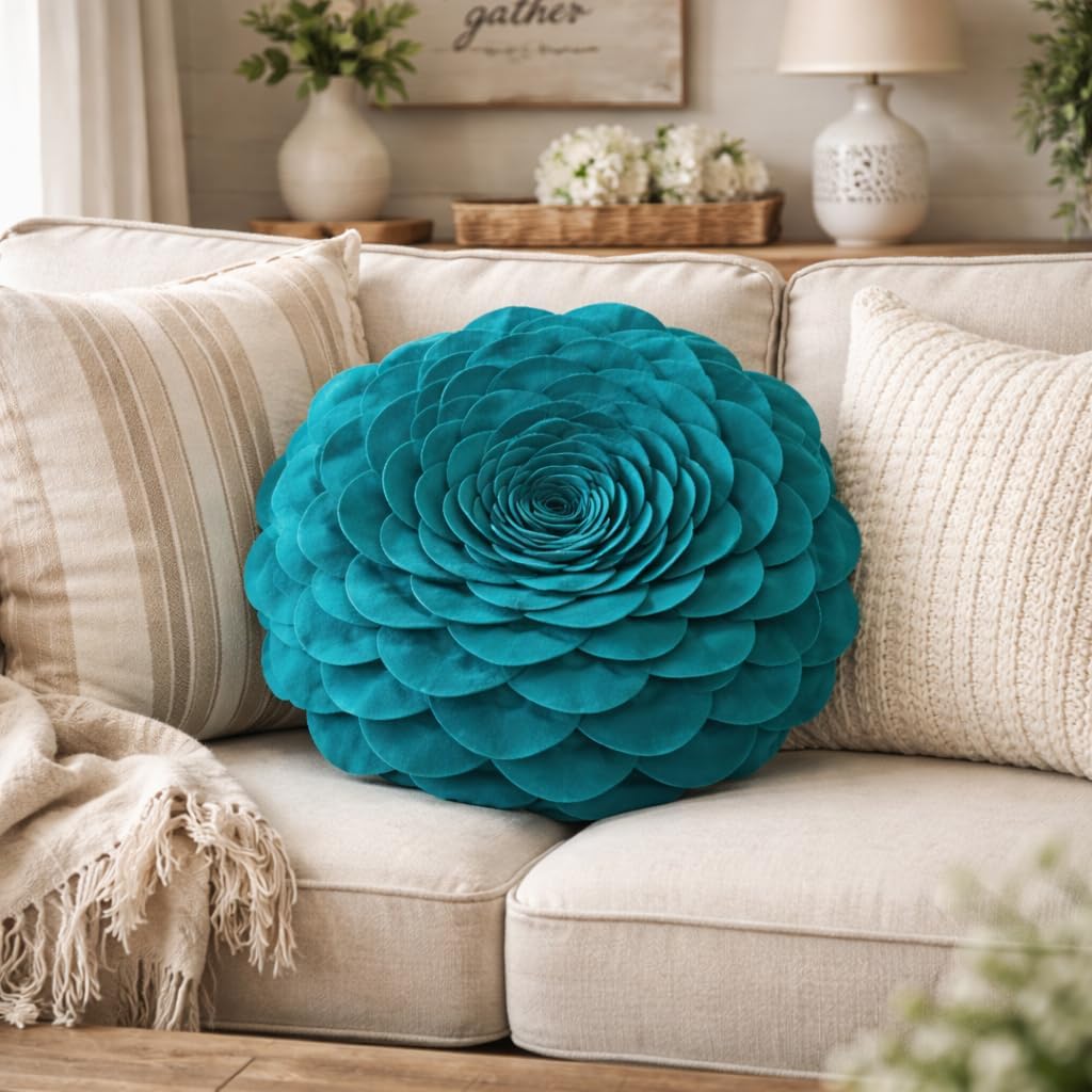 Elevate your home decor with this stunning Flower-Design Throw Pillow, which brings a touch of elegance and whimsy to any space. The accent pillow features a beautifully layered floral design, adding texture and depth to your living space. Each petal is carefully crafted, creating a lifelike and captivating visual effect. The rose flower design lends textured interest to any piece of furniture. Perfect for living rooms, bedrooms, or any space that needs a splash of color and style. The flower's vibrant color adds a pop of personality to your decor, making it a standout piece on your sofa, bed, or accent chair.