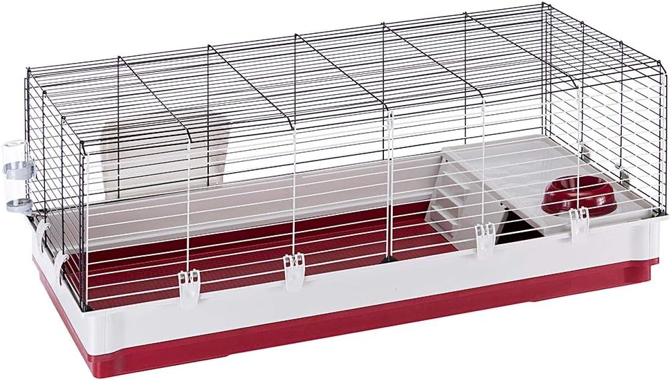 The Krolik green rabbit cage by Ferplast measures 39.5L x 23.75W x 19.44H inches and is an ideal choice as a rabbit cage, guinea pig cage & a chinchilla cage! Each deluxe rabbit cage comes with all of the accessories you need to make a perfect habitat for your rabbit including a hay feeder, large water bottle, feeding bowl & an elevated feeding area so your rabbit has a clean area to eat/drink from. This rabbit cage is easy to assembly with no tools required, includes an easy-to-clean 5.5" deep plastic base that contains litter inside the rabbit's home & has a powder coated wire top to ensure this cage will last! This rabbit cage provides your pet with a large living area for maximum comfort & a full front door for easy cleaning or access to your rabbit. Ferplast stands behind the quality of our products with a 1-Year Manufacturer's Warranty. If you have any questions about this product our customer service department would be glad to help you. Customer service can be contacted at: 1-800-428-8560, available 9:00 AM - 4:00 PM, Monday - Friday.