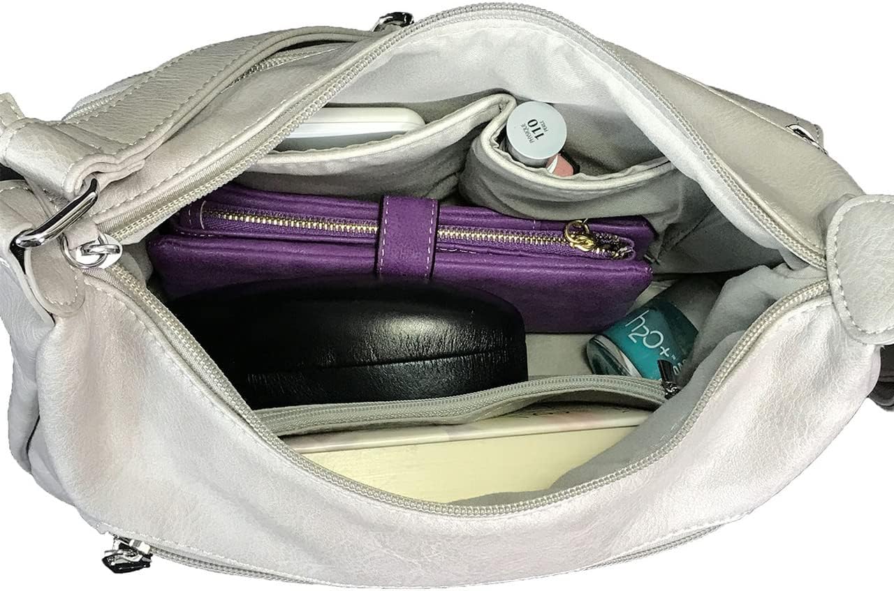 Fashion and functional like our purses. This small size shoulder bag can also use as a over the shoulder cross body bag. Multiple zipper pockets help organize your loose stuff. 4 front pockets, one back zipper pocket, Inside zipper pocket divider, zip wall pocket and cell pouches. It is a medium size " Petite" size bag, but with amazing capacity ? Can fit Ipad mini. Use environmental friendly material looks and feels like soft cowhide leather. Concealed and carry pocket 11x6.5" with removable hostler will fit most small and medium size CCW. Or, simply use it as a big pocket . A lock zipper for the concealed and carry pocket to keep the heat safe.