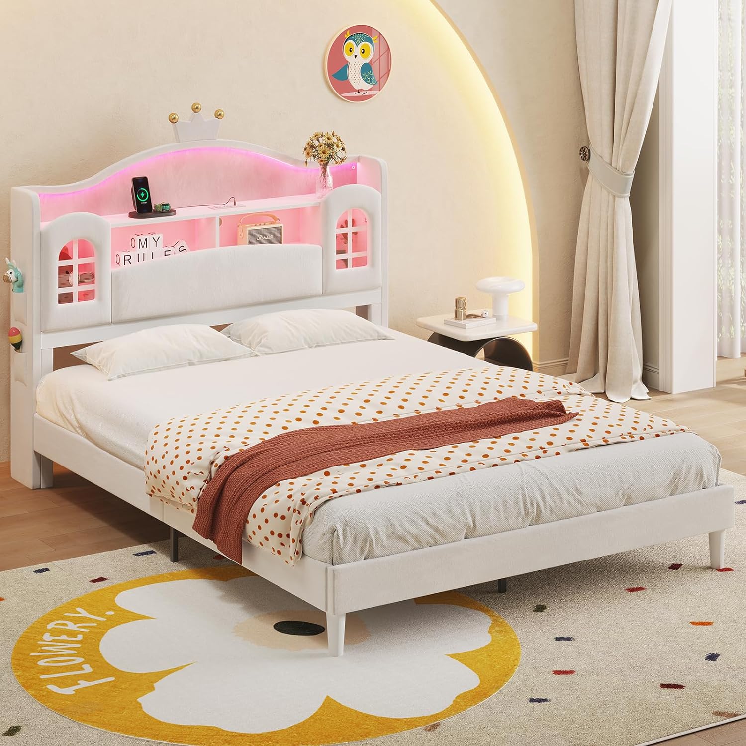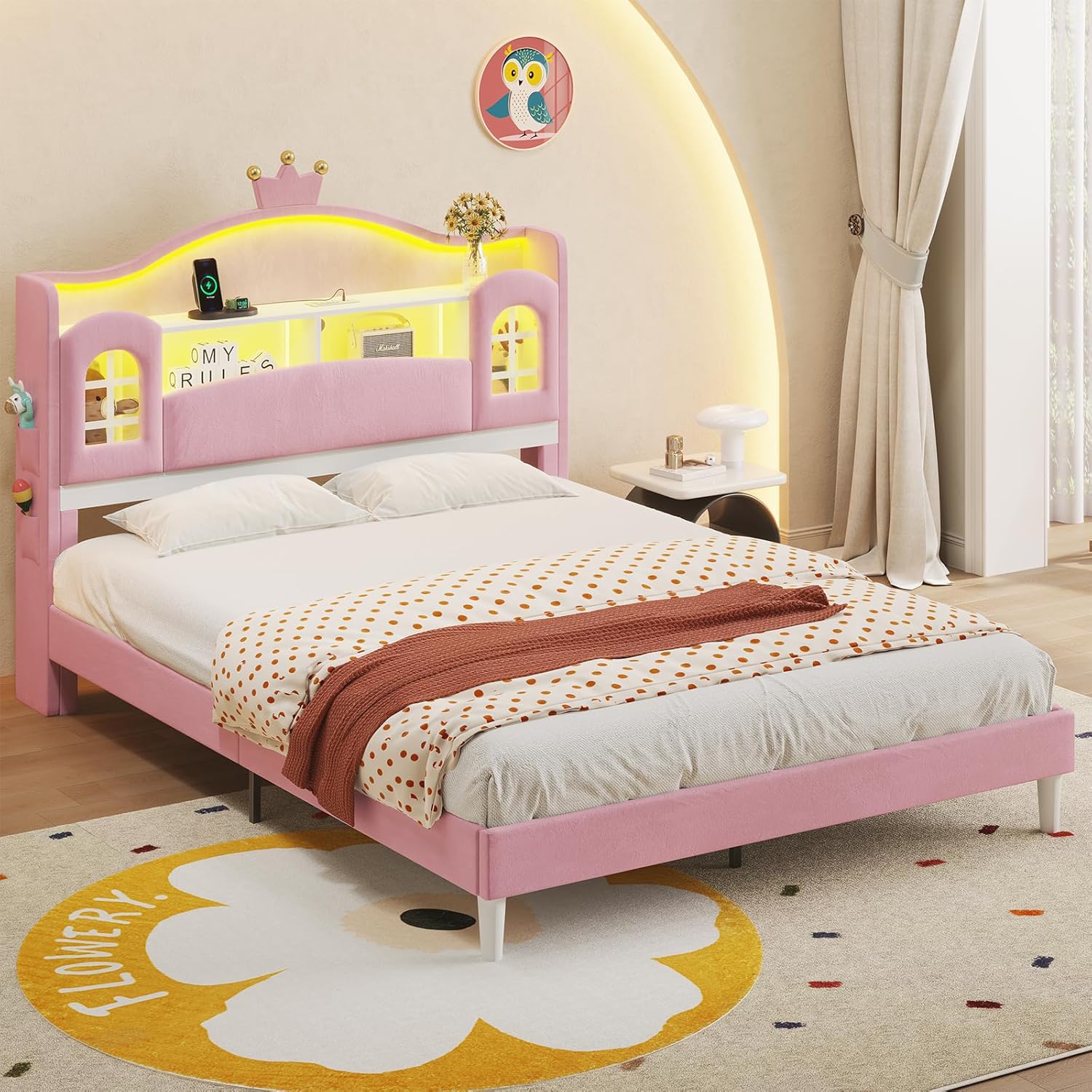 | Other Special Features of the Product | full size bed frame with LED Lights and Charging Station, full size bed frame with Storage Headboard, princess beds for girls with No Box Spring Needed |