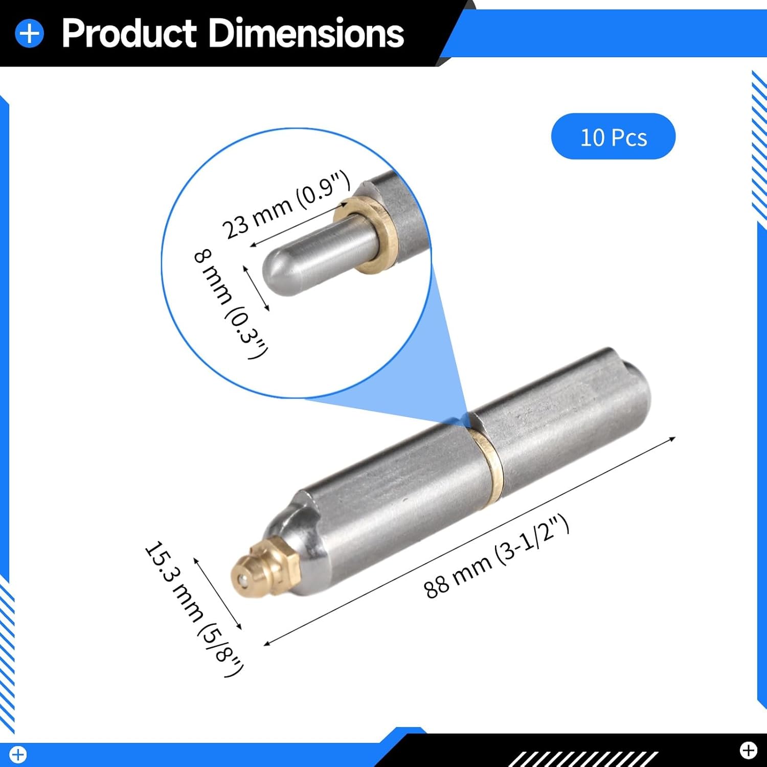 Color: Silver-Gray Material: Iron Size: Size: 15.3 x 88 mm (5/8 x 3-1/2 in) Package Includes: 10 x Weld on Hinge Note: - Please refer to the measurement. Tiny measuring error is allowable in normal range. - There might be a little color difference due to the monitor, camera or other factors, please refer to the physical item.
