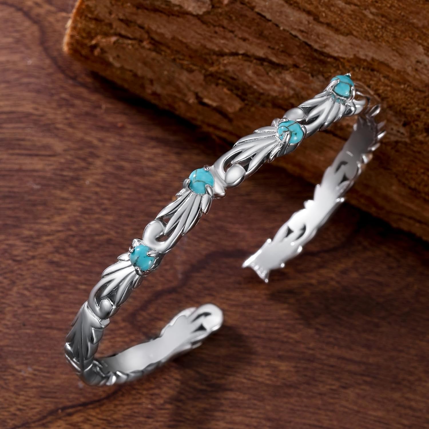 • This turquoise bangle makes for fine hypoallergenic skin-friendly silver, plated with precious rhodium for a long-lasting, lustrous finish. Cuff Adjustable Designed, fit for 6 6.5 7 7.5 inches, Turqupise Stone Size: 4mm*4