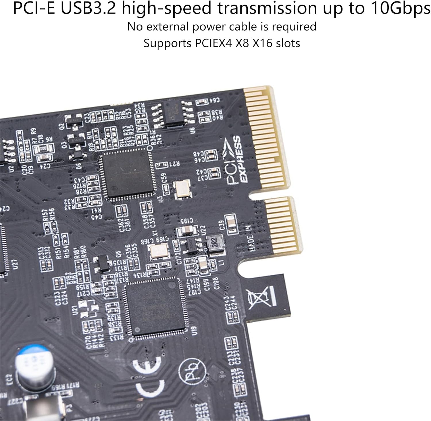 Highly Speed USB3.2 PCIe Card With 4port Type C And 4Port USB A For Desktop PC Expansion, 10Gbps Data TransferFeatures:Elevates your desktops connectivity with the USB3.2 PCIE Card, featuring 8ports and fast 10Gbps transfer speeds for efficient multitasking and data management.This PCIe expansion card offer seamlessly blend of 4 USB A and 4 Type C USB port, ensuring compatibility with a wide array of peripherals without the need for external power supply.Suitable for enthusiasts and professional users alike, this USB converters is for those look to enhances their desktops port capacity and performances.Transform your workspaces into powerhouses of productivity; connecting printers, cameras, keyboards, and more, all while maintaining high transfer rates for demanding applications and workflows.With for multiple operating systems as Window, the USB3.2 PCIE Card is upgrades for any desktop PC seeking superior expansion capabilities.Specifications:Component:PCBSize:Approx.10x12x8.2cm/3.94x4.72x3.23inProduct Interfaces: PciE4x (Compatible for 4x8x, 16x Slots)Output Interfaces:USB Ax4+Type C 4PortInterfaces: USB3.2Speed:10gbps+10gbps (Total 20gbps)Main Control Chip: Asm3142+vl822+vl822 Main Control Systems: Win7, Win10, Win11,Package Includes:1pc USB3.2 PCIe CardNote:Please allow 1mm errors due to manual measurement. Due to the differences between different monitors, the picture may not reflect the actual item color.