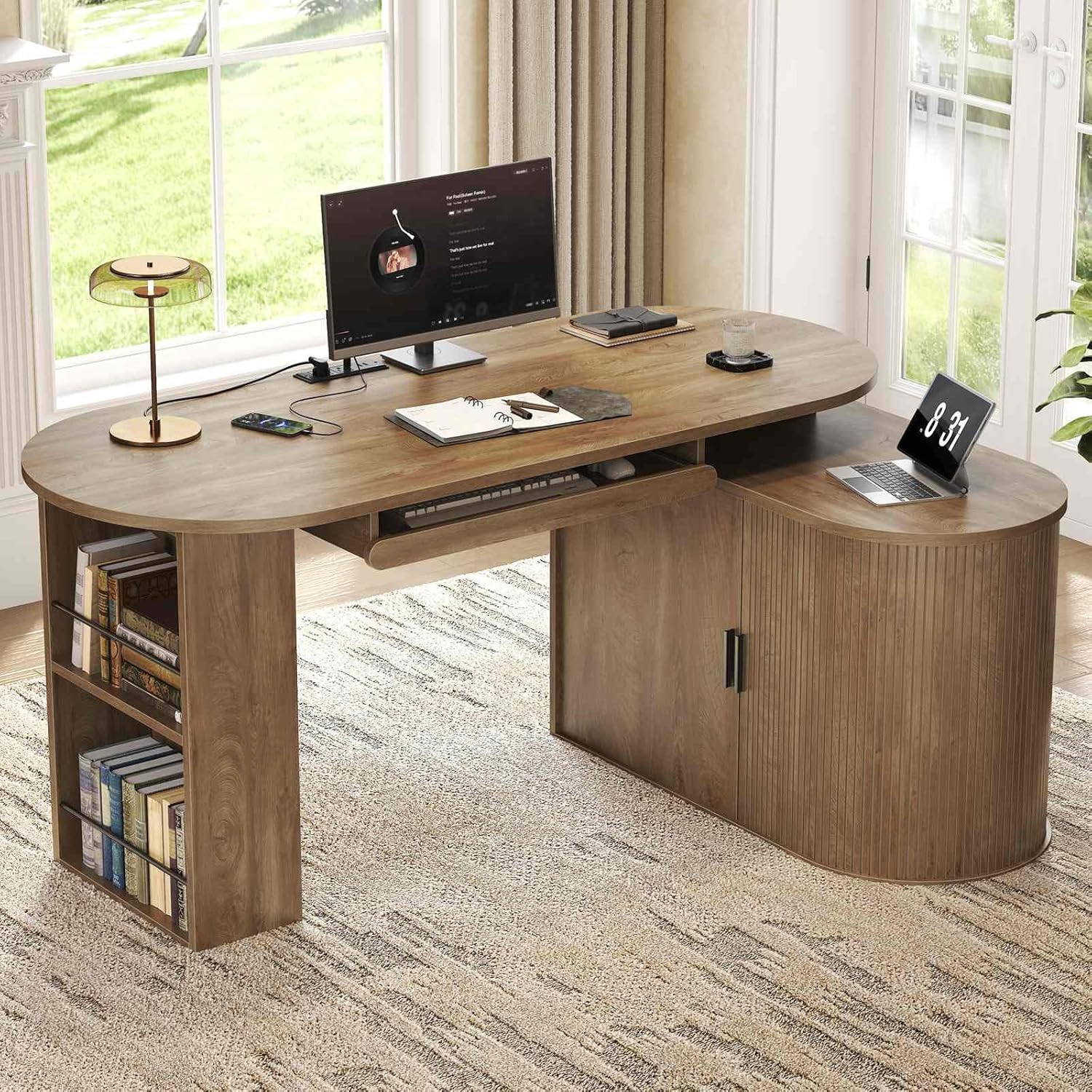 | Additional Features | Built-In USB Outlet, Keyboard Tray Included, Reversible |