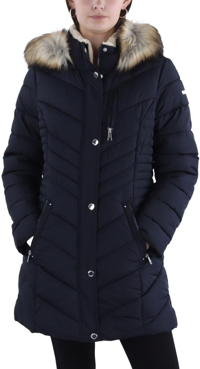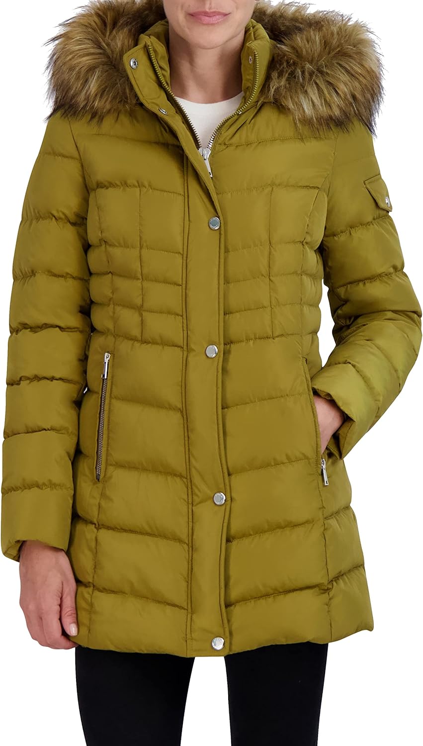 | Style | Stretch Quilted Puffer Coat – Heavyweight Winter Jacket Faux Fur Hood |