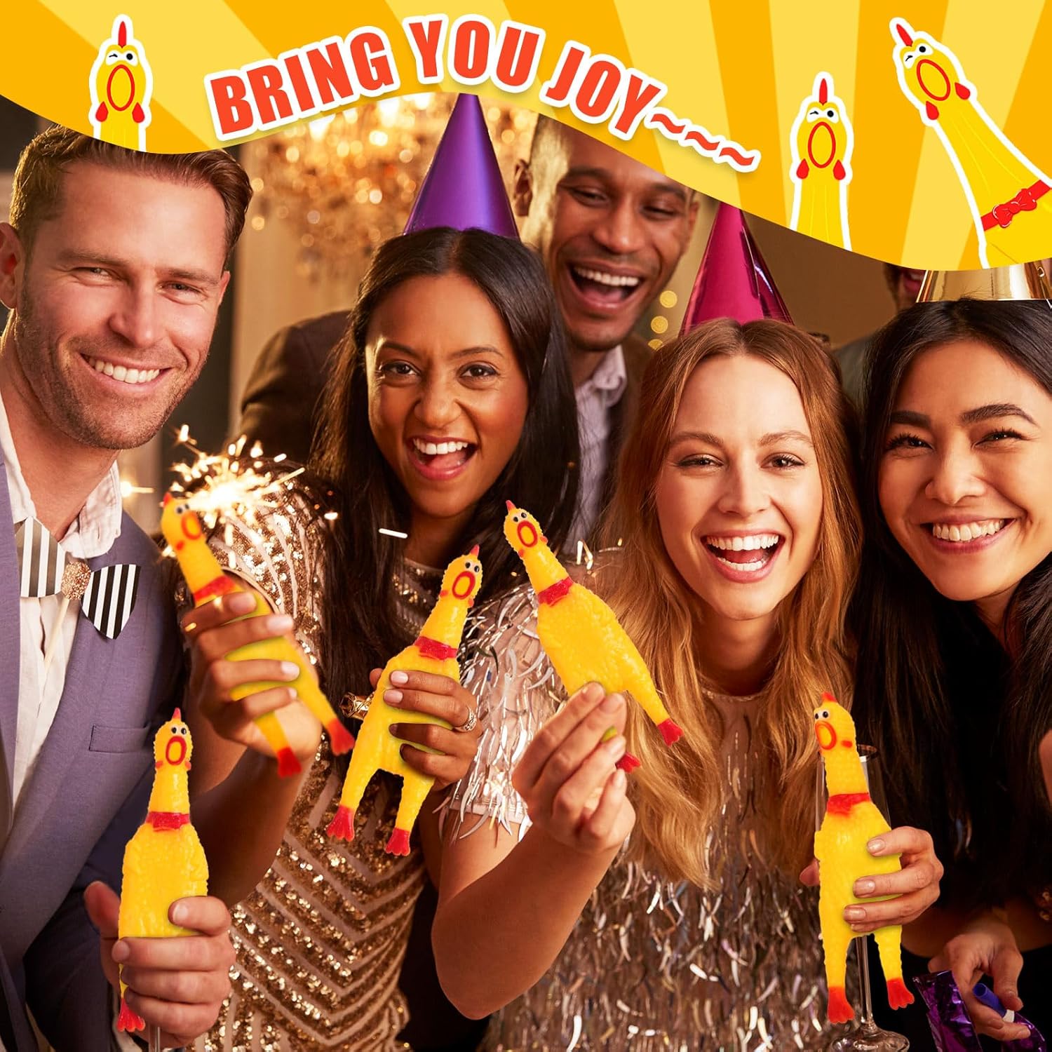 Features: The squeaking chicken enjoys large quantities for daily applications and sharing with people, you can widely apply them as tools, toys, gifts, decorations and more. The rubber squeaky dog toys enjoy reliable and safe material, easy to squeeze, not easy to break, fade or wear out, your whole family can enjoy them for a long time, helping you stay mental health, and making you happy the whole day. Specifications: Main color: yellow Main material: rubber Size: approx. 6.3 inches/ 16 cm Package includes: 150 x Screaming rubber chickens Warm notes: Please allow slight deviation due to manual measurement. Please allow slight color differences due to different monitors. Small parts are included, people under 12 years old and pets should apply under the adult's supervision to avoid choking risk.