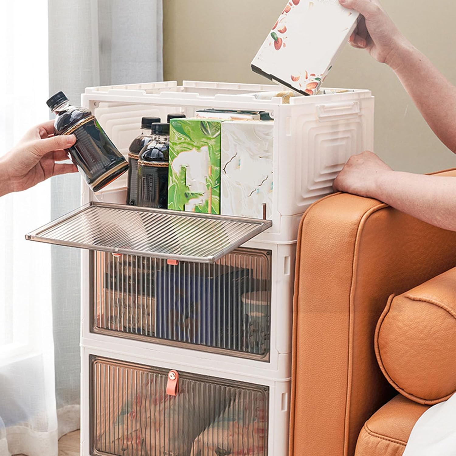 • Double Sided Opening: Each compartment locks firmly, allowing stable stacking and customized cabinet arrangements. The magnetic opening and closure doors open effortlessly, while the top lid provides a spacious opening for quick retrieval of stored items.