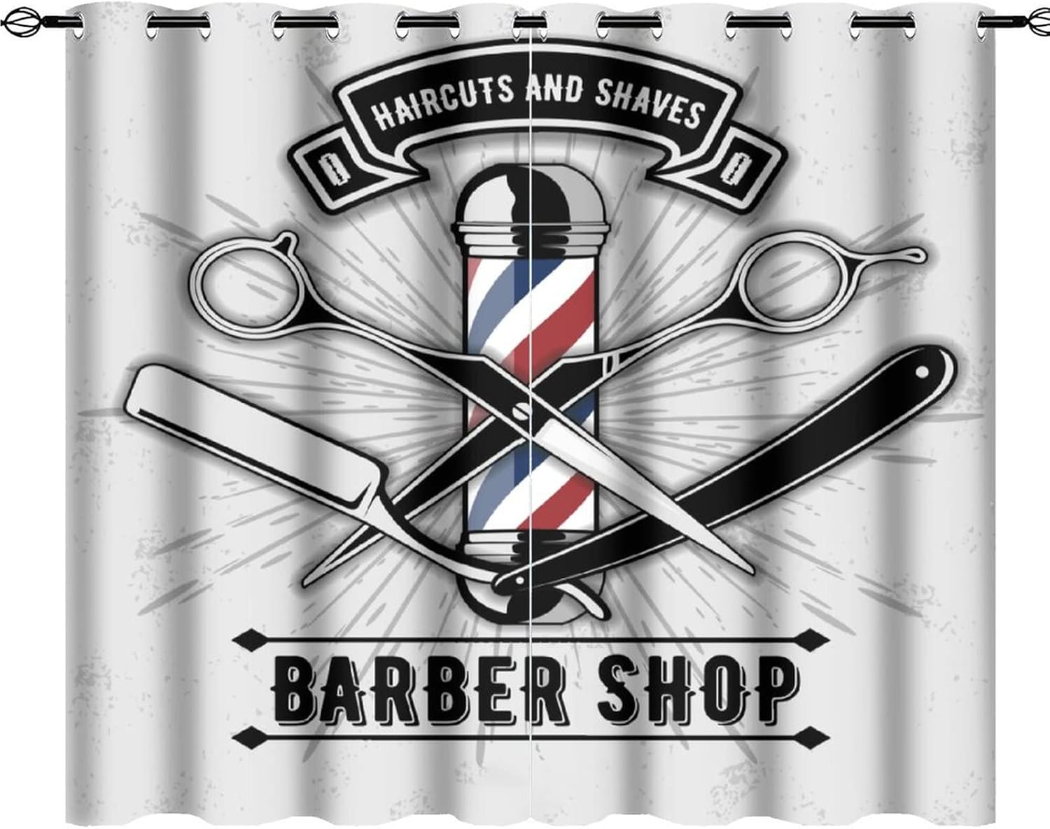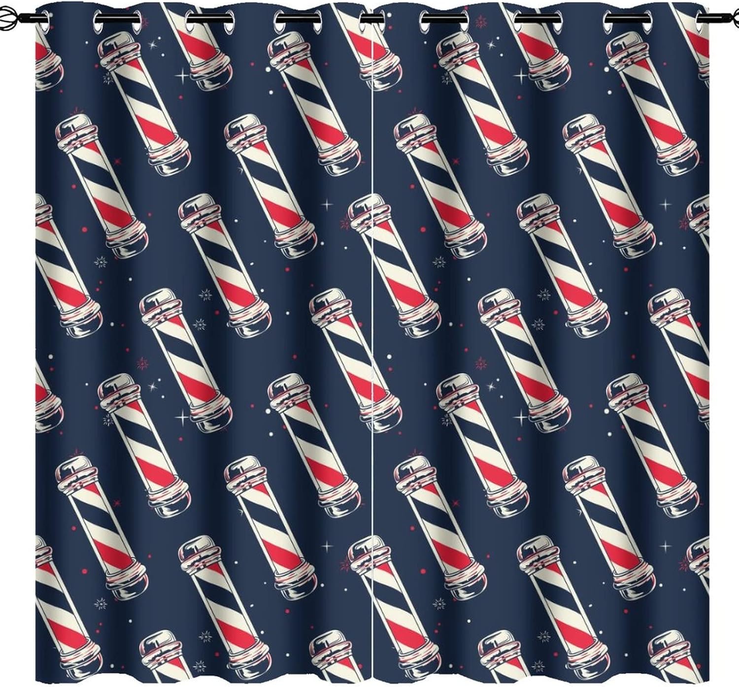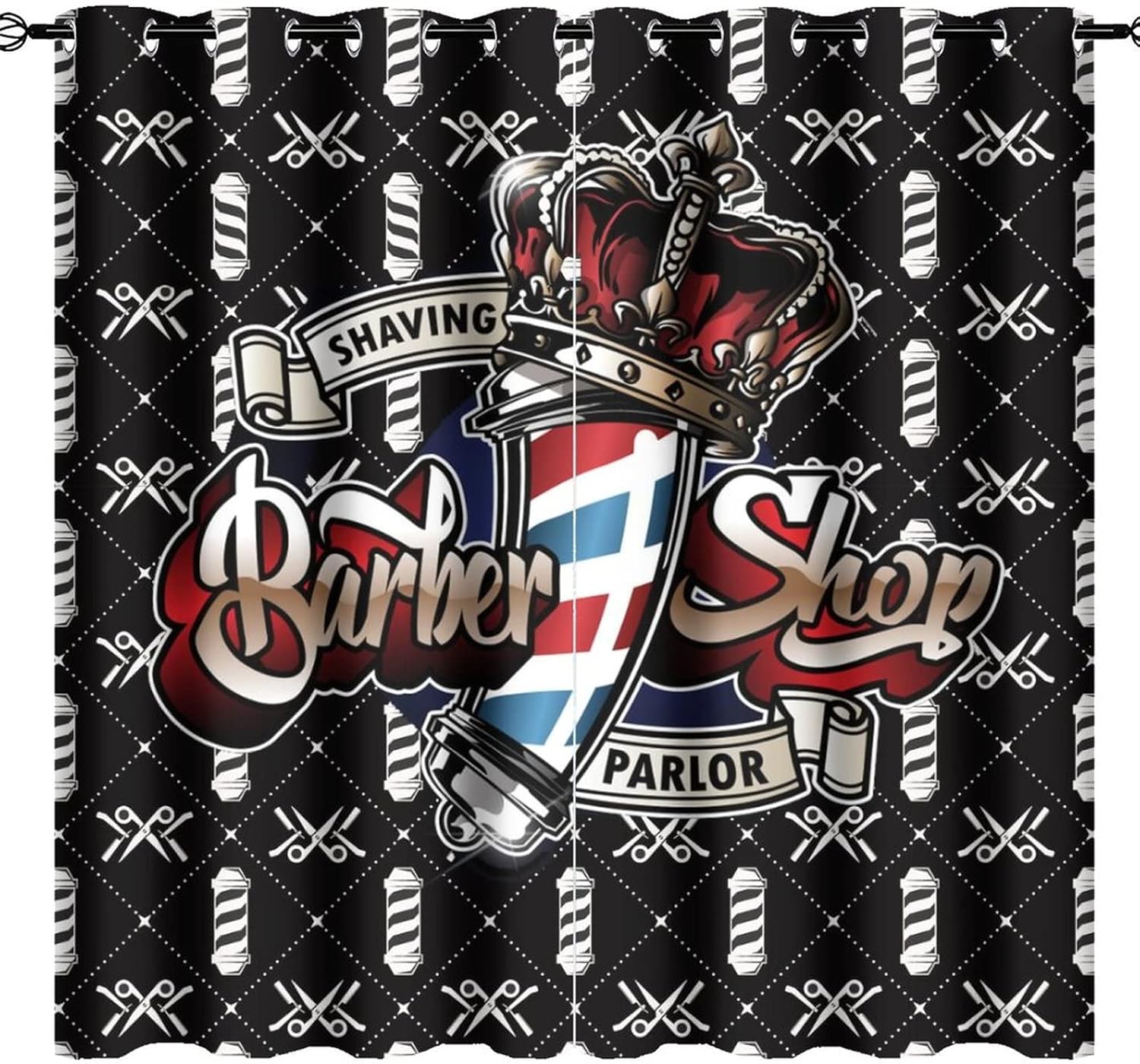 JretailAx Modern Barbershop Salon Pattern Patterned Blackout CurtainsThis Modern Barbershop Salon Pattern Curtains liven up your indoor or outdoor spaces with a sense of airiness and beauty.Workmanship & Design:Each curtain is machine-made and neatly sewn with no loose threads. Soft, high-quality fabrics ensure long-lasting durability.Beautiful patterns, clever colour matching and advanced printing and dyeing processes for vibrant, fade-free colours.This Abstract Cool Barber Company 3D Print Curtains is suitable for: living rooms, bedrooms, boys' rooms, girls' rooms, nurseries, dining rooms, offices, dormitories, window sills, etc.Care instructions.Machine wash in cold water or hand wash, do not bleach, iron at low temperature.Customer service.24 Hours customer support.