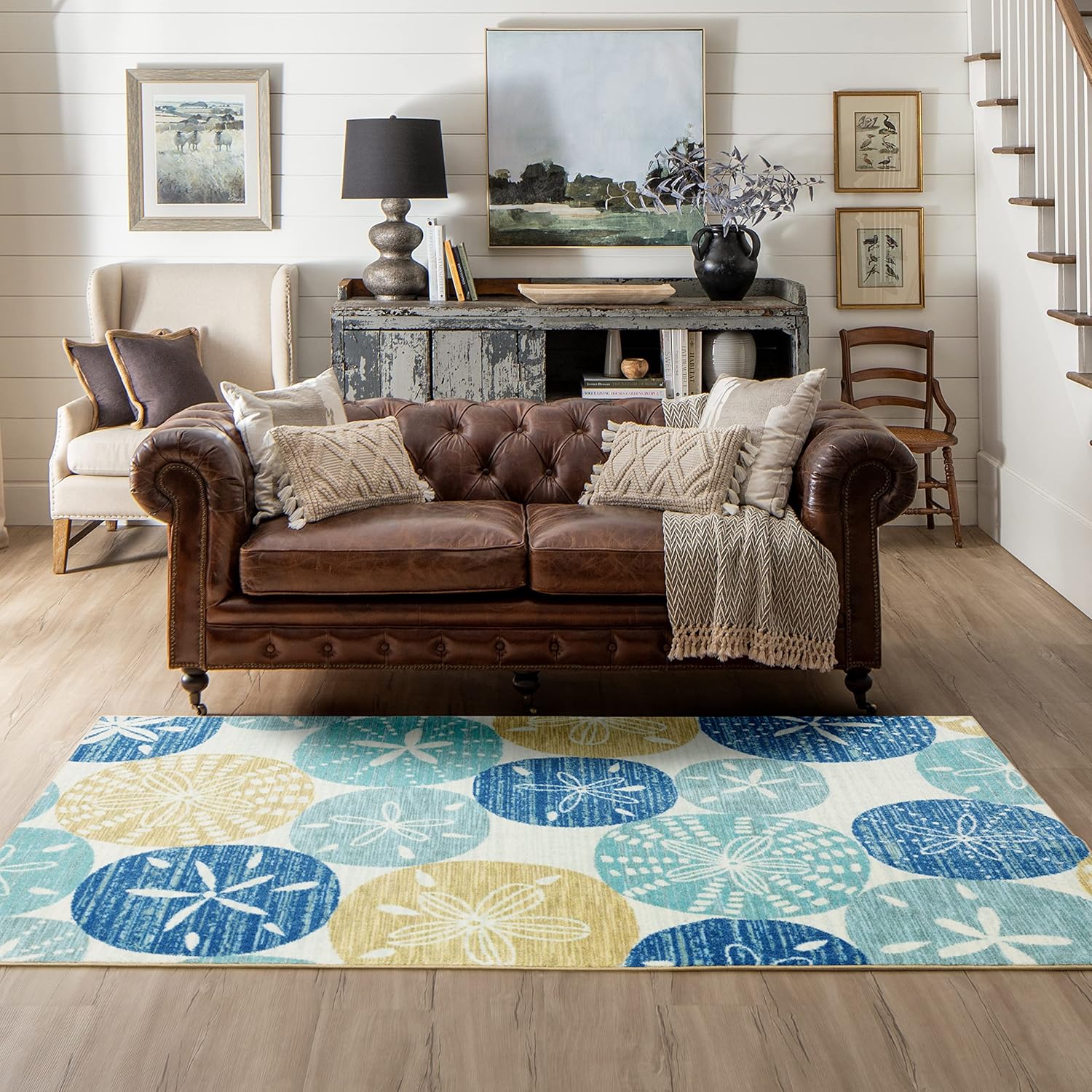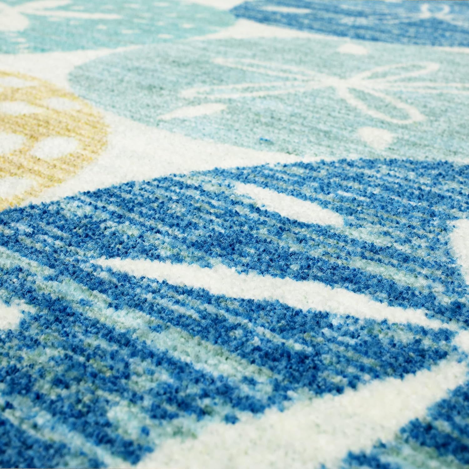 Coastal, nautical, tropical - if you are inspired by the sea this design is for you! Featuring a sand dollar design in sun washed blue and tan hues, the Mohawk Home Multi Sand Dollar Area Rug is a stunning style for any space. Made with exclusive EverStrand, a premium polyester yarn created from post-consumer recycled plastic bottles, this eco-friendly rug offers sumptuous softness and rich colors with the dependable durability needed for busy households. Available in scatters, runners, 5x8, 8x10, and other popular sizes, this area rug is a great choice for adding style to a variety of spaces in your home.