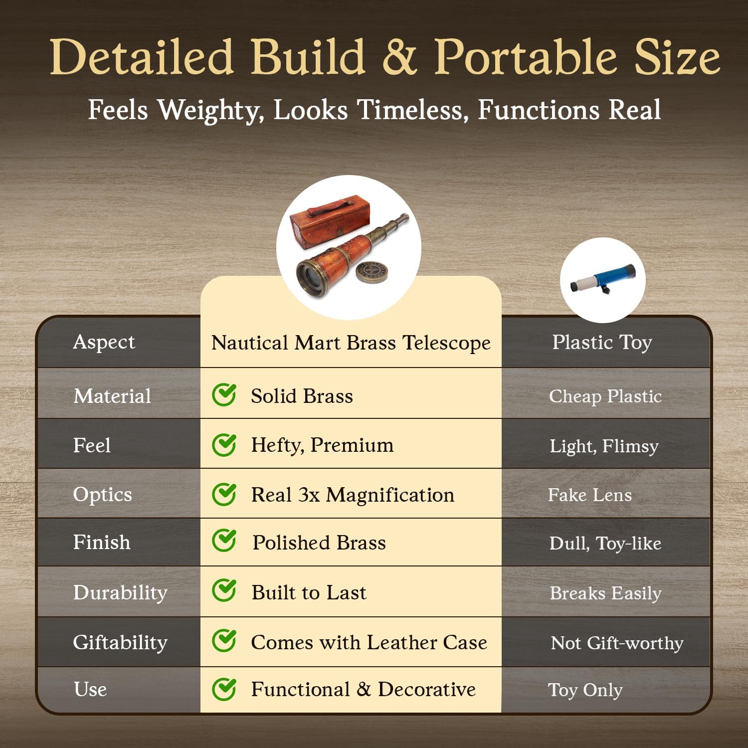 | Additional Features | Handcrafted Brass Design with Leather Box |