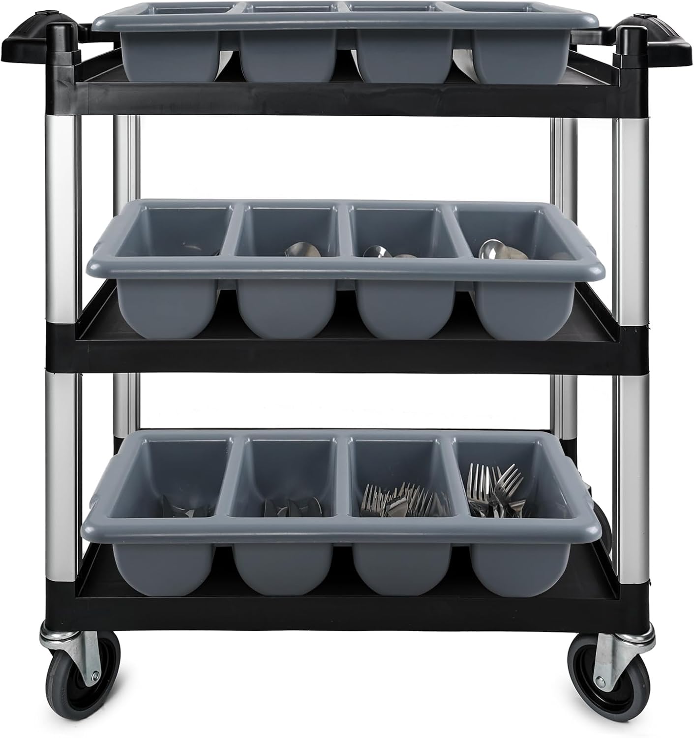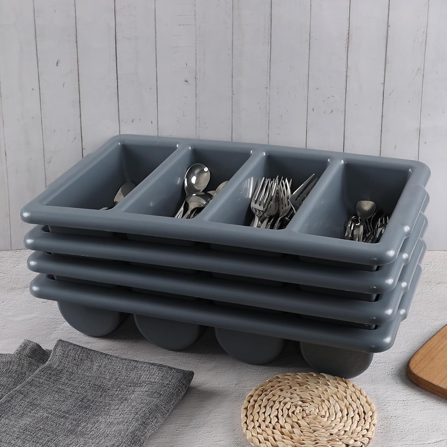 4-Pack 4-Compartment Plastic Commercial Cutlery Bin In Gray