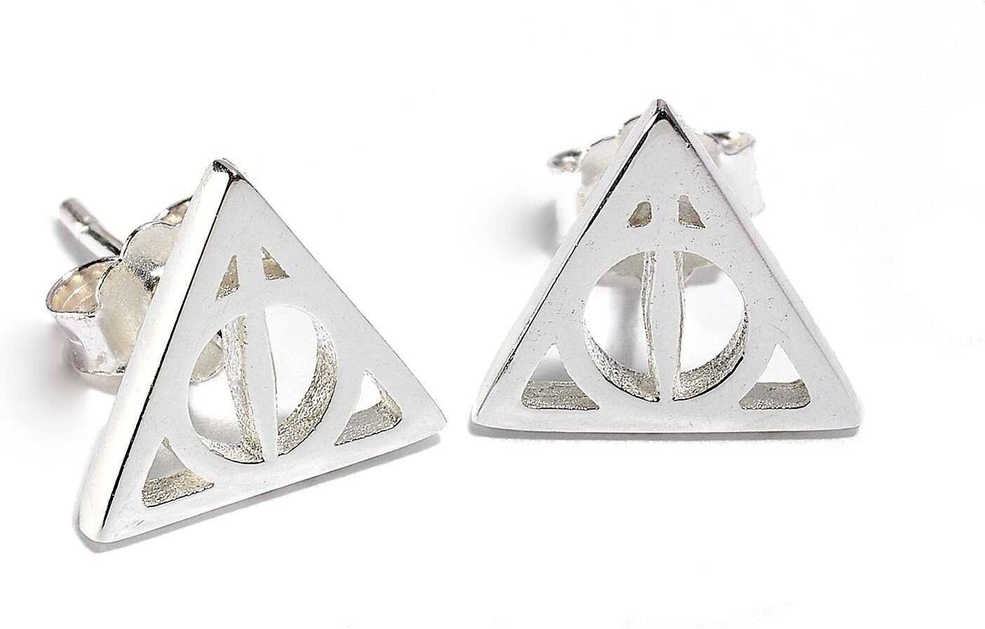 Symbolising the three most powerful magical objects, the Cloak of Invisibility, the Resurrection Stone and the Elder Wand, the Deathly Hallows symbol is a prominent feature throughout the Harry Potter Series.These stud earrings are solid sterling silver.Each stud measures 9 mm by 9 mm.These earrings are presented in an official branded Harry Potter gift box.