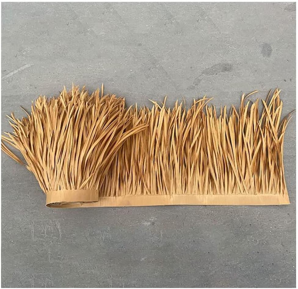 Product Specifications:Product Name: Simulation ThatchProduct material:PVC、PEProduct size:The size of each piece is 0.5x1m(1.64x3.28ft), It takes about 3m per square meter,Fast laying and labor saving.Product use: Park view resort/hotel seaside pavilion/restaurant decoration, etc.Plastic simulation thatch details:1. BuildProfessional and technical craftsmen create different standards, support custom-made, flexible, convenient, fast and easy-to-maintain construction and installation.2. High durableflame retardant, weather resistance ,and the color is lasting and stable,has high stain resistance, easy to clean and maintain.3. Anti-stress and practicalGood manufacturability, made of fine materials, can withstand the harsh environment, can be recycled and reused, energy-saving and environmentally friendly.☄Installation method:One: Plate bindingThe roof should be waterproofed first, and the board should be laid on the waterproof layer, and then the thatch should be nailed to the board piece by piece;Two: wood board bindingMake a wooden shelf on the waterproof roof, and then install the thatch nails on the woodThree: Bundled installationSpread the plastic steel net on the waterproof roof, and then tie the thatch to the plastic steel net.