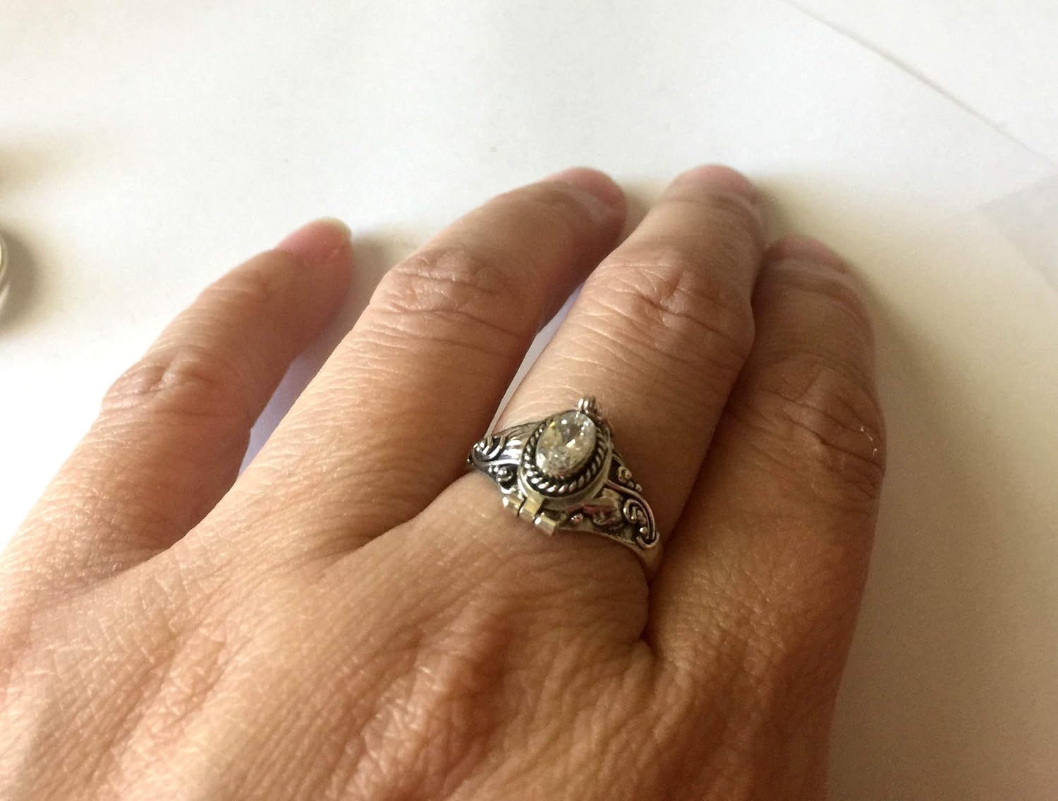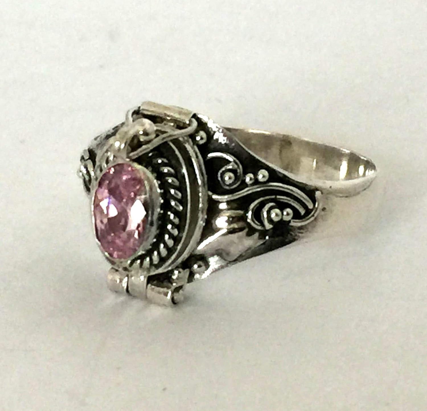This ruby is lab created sythetic stone for the month of July birthstone birthday. Ring size various and stone color is limited, Please use pull down menu to select. Dimension of the outer oval locket face: 12mm x 8mm Dimension of the inner locket space: 8mm x 6mm "925" is stamped on the back of the inner ring. All items are lead and nickel free, they are sterling silver, not silver plated or silver filled. All jewelry ship with jewelry box and gift wrapped. Please note that the ring's band width and thickness are the same from size 6 to size 10. The the ring size gets bigger, it will appears the band get thinner and more narrow.