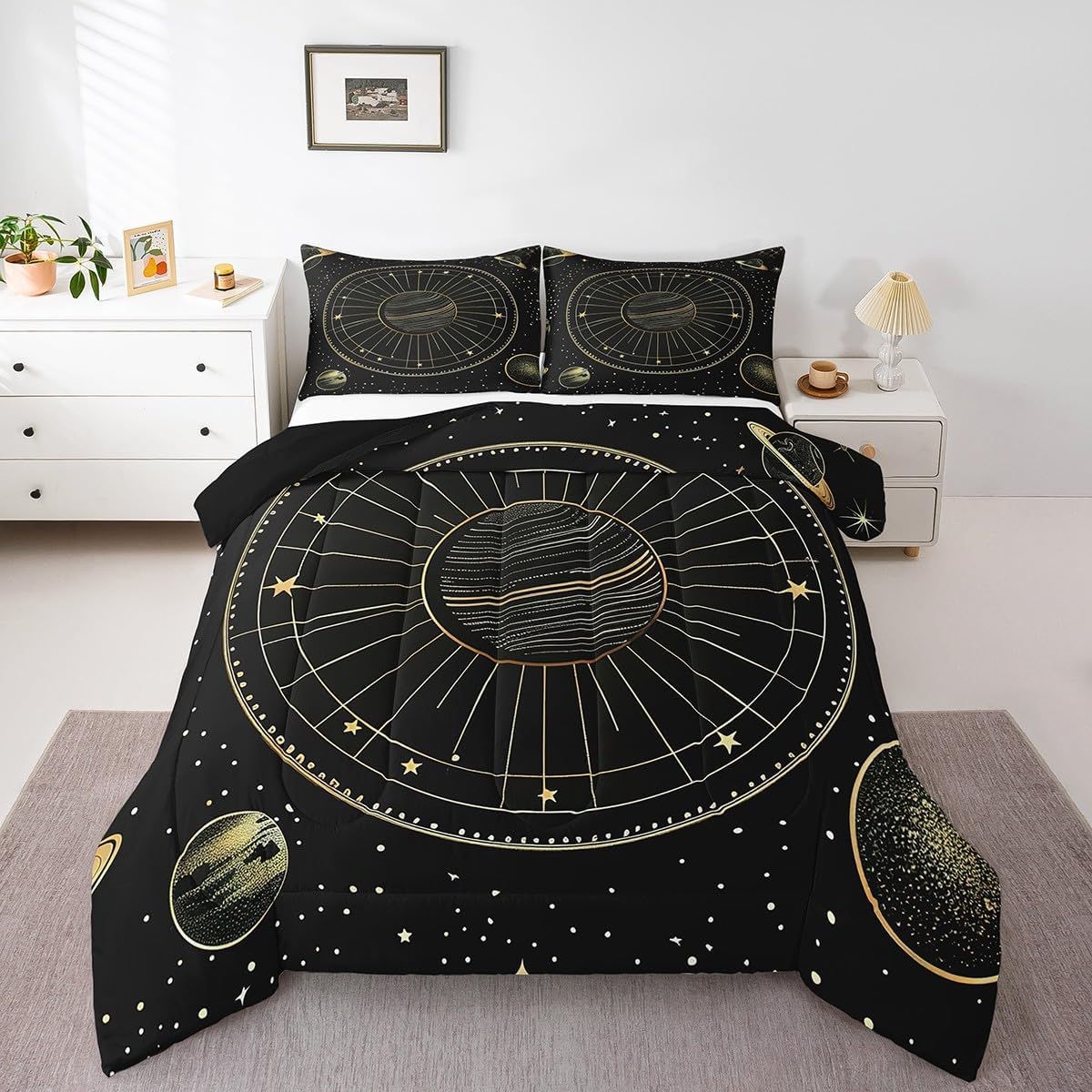 Best blessings: Makeover your bedrooms every season with our Comforter sets. Perfect item for your room, girls boys youth room, master bedroom. Also can order it for your mom, dad, sister, brother, grandma, wife, husband, daughter, son and all other beloved. Size Information: 1 x Toddler size down comforter 42"W X 58"L, 1 x quilted pillow case 30"W X 20"L,2pcs. 1 x Twin size down comforter 68"W x 90"L, 1 x quilted pillow case 30"W x 20"L, 2pcs. 1 x Full size down comforter 79"W x 90"L, 2 x quilted pillow cases 30"W x 20"L,3pcs. 1 x Queen size down comforter 90"W x 90"L, 2 x quilted pillow cases 30"W x 20"L,3pcs. 1 x King size down comforter 104"W x 90"L, 2 x quilted pillow cases 36"W x 20"Lx,3pcs. Useful and practical: A luxurious product for homes, dorm rooms, hotels, guest rooms. Practical to use for being polyester, feels like cotton which is super soft and breathable. No chemicals used, No dye substance harming the health of you or your family. Unique design: Vivid Colors won't fade thanks to new 3D digital printing methods. These unique designs match well with various color palettes of your rugs, curtains, headboard, furniture, and all other decor accessories. Personalized: As manufacturers of digital printed home textiles, we follow current trends and bring you the latest home fashion. You can give it to your family or friend, relative or boyfriend girlfriend, or to yourself, the item should be interesting and authentic. Note: Machine washed in cold water. Do not bleach, Tumble dry low. The Bedspread and Pillow Shams are printed on the Front Side Only.