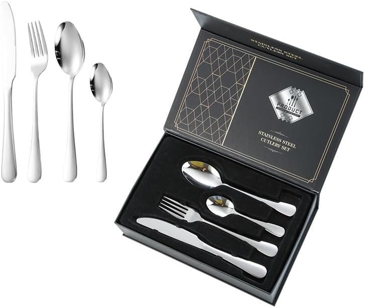 Material: stainless steelPolishing process: Cloth polishing (mirror polishing)Style: light luxury styleStainless steel material: 410 stainless steelSpecifications: Silver 16-piece setSpecifications: Gold 16-piece setSpecifications: Rose gold 16-piece setSpecifications: Fantasy color 16-piece setSpecifications: Black 16-piece setProduct quality level: first-class productStyle type: Light luxury retroProduct category: Knife, fork and spoon set.About our BrandOur brand is GOODJAYVEN. We have always been committed to Household items. Do our best to bring more creative products to our customers.