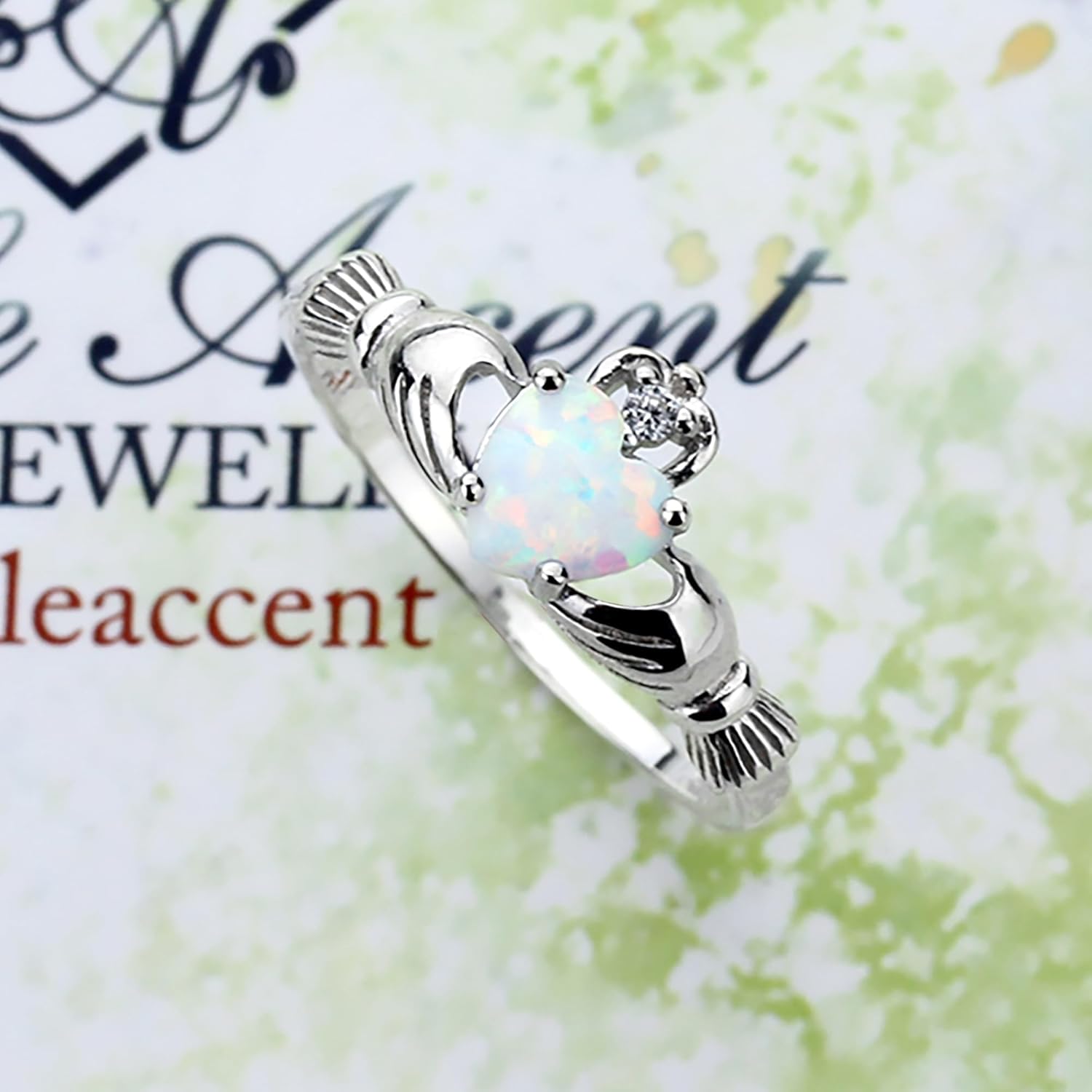 | Manufacturer | Sterling Silver Simulated White Opal Heart Claddagh Ring 9MM (Size 3 to 13) |