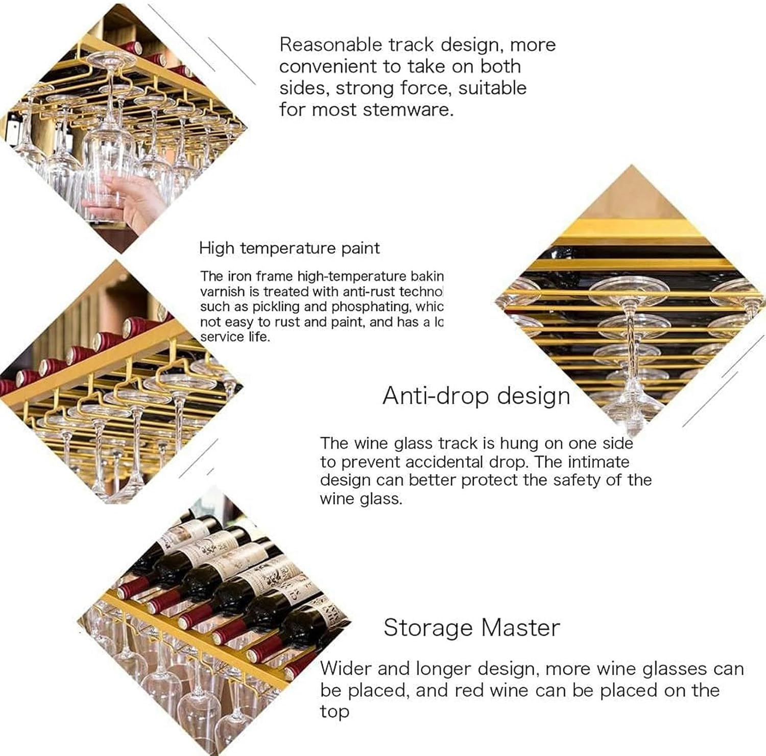 Discover the perfect blend of style and functionality with our exquisite wine rack, designed for both wine enthusiasts and casual drinkers alike. This elegant storage solution not only keeps your wine bottles, glasses, and utensils nized but also enhances the aesthetic of your kitchen, dining room, or living room. Whether hosting intimate gatherings or simply enjoying a glass of your favorite white wine, this wine rack is a must-have. Available in various sizes, our wine rack caters to your unique needs: - 60cm x 30cm holds up to 12 goblets - 80cm x 30cm accommodates 18 stemware - 100cm x 30cm fits 24 goblets - 120cm x 30cm supports 30 goblets - 150cm x 30cm holds an impressive 39 goblets Designed to fit goblets with a bottom diameter between 4cm and 9cm, our rack ensures that two cups with a belly of less than 10cm can hang without touching. The height of your wine glasses is flexible, but be mindful of actual height during installation to avoid collisions. Crafted from low carbon steel and finished with high-temperature baking paint, this durable wine glass holder is available in a chic local gold or silver white finish, adding a touch of sophistin to any space. Its simple yet stylish design makes it a perfect fit for living rooms, lounges, bars, and more. If you enjoy personalizing your home accessories, this wine rack is an ideal gift for yourself or a loved one. Enhance your living space while keeping your wine collection stylishly nized. Don‘t miss out on this opportunity to elevate your home decor!