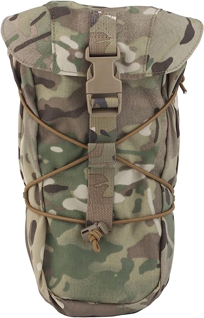 Weight: about 166g Size: 25cm*35cm Feature: ① MOLLE compatible. ② Tweave fabric make it large capacity to holder different types of contents. ③ Drain holes in bottom. ④ Adjustable bungee shock cord for fastening. ⑤ Drawstring on top.