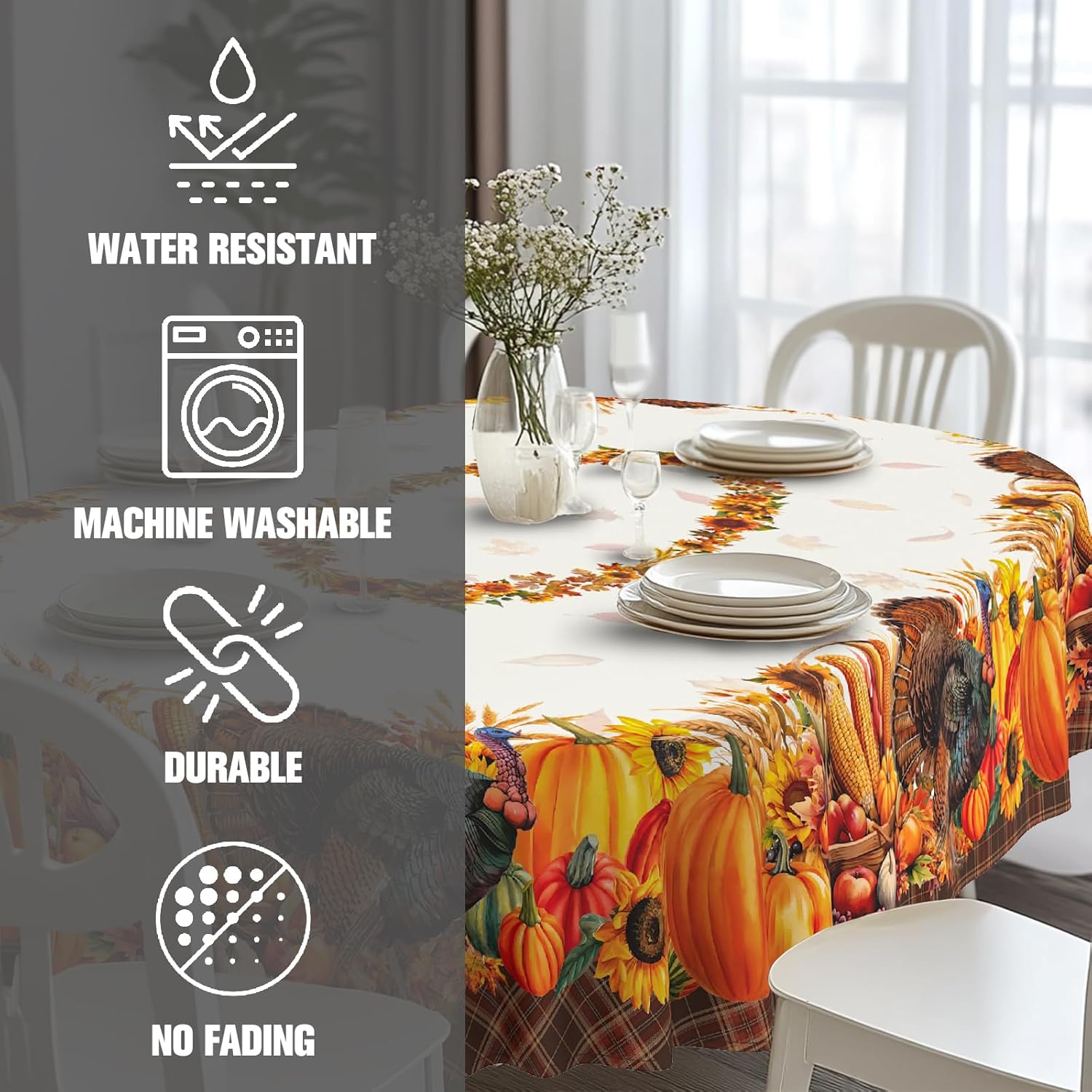 Thanksgiving Tablecloth Fall Tablecloth Oval 60x120 Inch, Autumn Harvest Turkey Pumpkin Table Cover Waterproof for Fall Thanksgiving Dinning Table Decorations