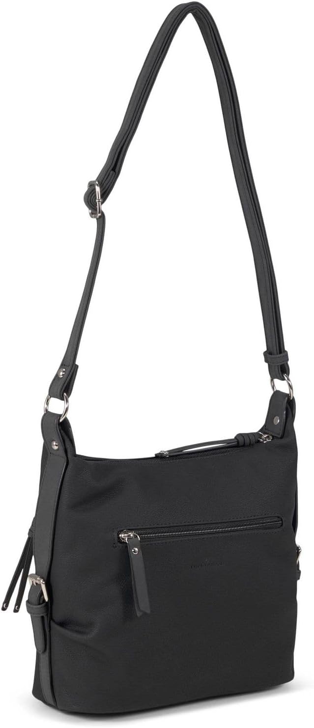 Comfortable to wear with fine material mix Whether for the office or the shopping tour, this bag always fits and is a real addition to your wardrobe. Because not only the combination of soft grained with smooth faux nubuck leather, the style is a real hit but it can also convince of itself in terms of storage space With a total of 7 compartments, all things are always at hand The individually adjustable soft shoulder strap is also great. Zip opening bag, 2 front zip pockets, 1 back zip pocket, inside 1 zip pocket, 1 smartphone compartment, 1 slip pocket, 1 long adjustable shoulder strap.