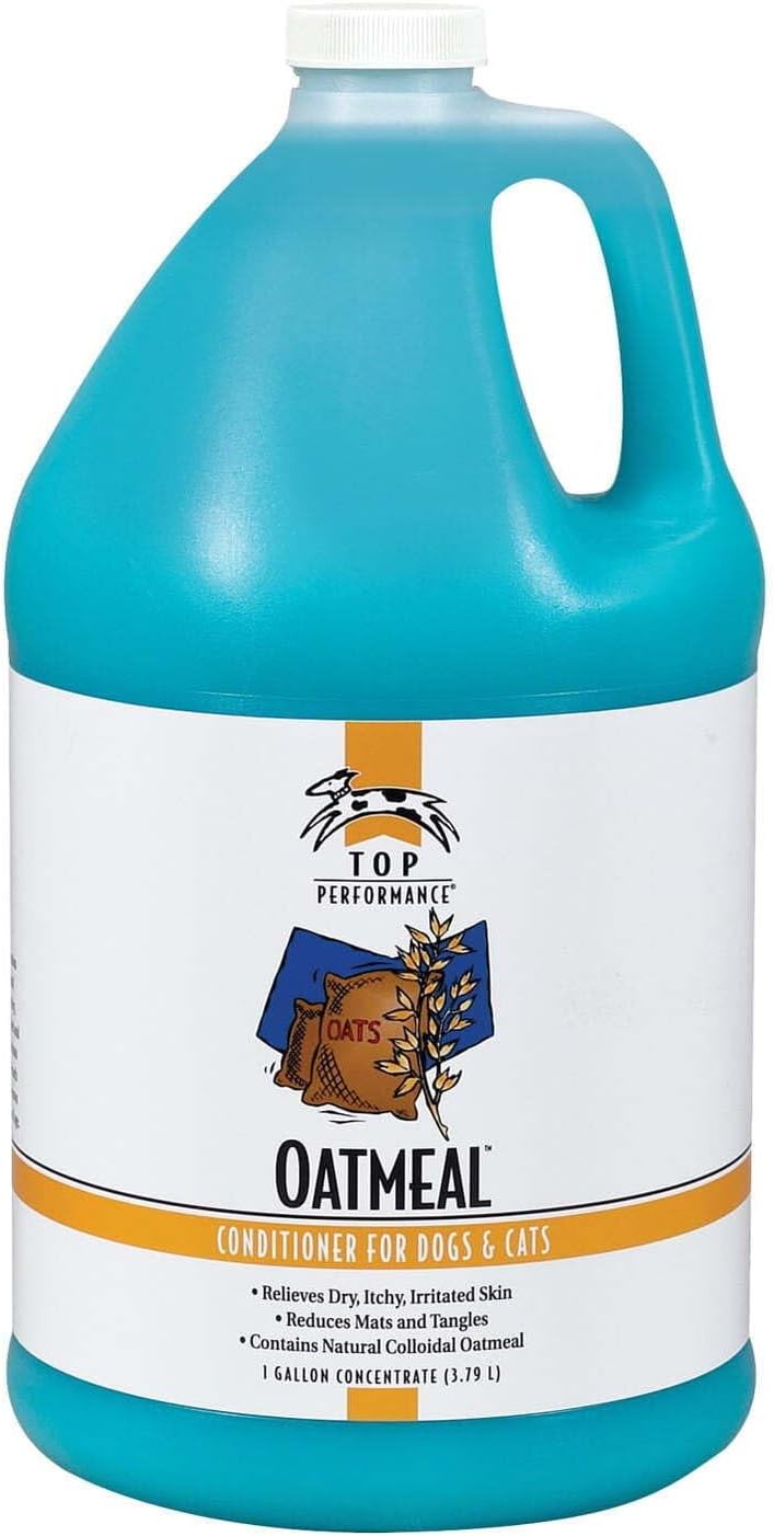 Top Performance Oatmeal Conditioner is made with colloidal oatmeal conditioner moisturizes dry, itchy, flaky skin.• Clean lemon and sage scent • Soothes dry, itchy skin and restores moisture • For best results, use in ready-to-use strength; can also be diluted 7:1Safe for puppies and kittens over 6 weeks old.
