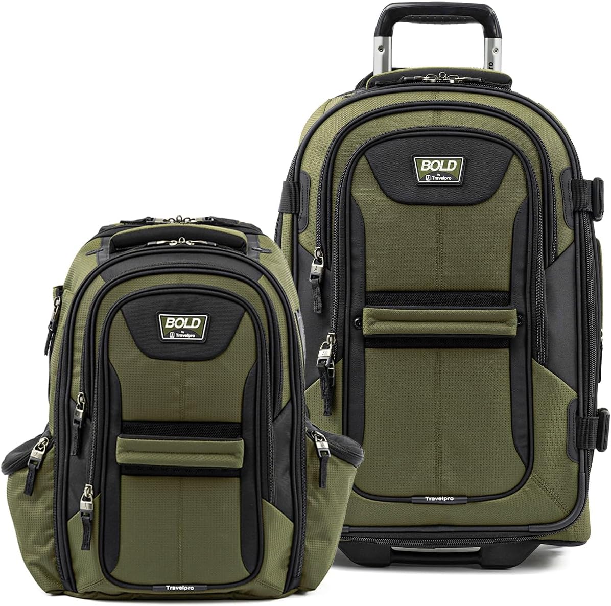 Make every journey a Bold™ one with this durable yet lightweight 2-Piece Set from Travelpro®, featuring a laptop backpack and 22” Expandable Rollaboard® for seamless carry-on travel. Built to handle daily wear and the rigors of travel, this lightweight set is crafted from durable, high-density polyester fabric treated to resist moisture and stains, backed by the Travelpro® Built For A Lifetime Limited Warranty with the Trusted Companion Promise. The laptop backpack is perfect for travel and everyday use, featuring a padded 15.6” laptop sleeve and padded tablet sleeve, both accessible through exterior zippers for quick convenience. Dual side pockets hold water bottles, umbrellas, or small essentials, while a hidden back pocket with key ring keeps valuables secure. Breathable back padding and adjustable shoulder straps deliver all-day comfort, and neoprene carry handles offer versatile carry options. For effortless mobility, a rear strap slides securely over the Rollaboard® handle. The 22” Expandable Rollaboard® fits within most domestic airline carry-on size restrictions yet provides ample space for medium-length trips. A 2” zippered expansion increases packing capacity when needed, while interior organization includes a mesh lid pocket, large wet pocket for damp/dirty items, and a padded exterior tablet sleeve. A cushioned top handle adds comfort, and high-performance ball-bearing wheels ensure smooth rolling, guided by a strong, aircraft-grade aluminum telescoping handle with adjustable height. Reinforced wheel housings, skid guards, and molded corner protectors safeguard against wear, keeping your bag travel-ready trip after trip. Compression straps inside help secure belongings and reduce bulk.