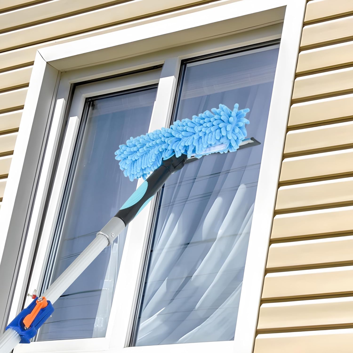 Window Squeegee with 24FT Extension Pole, Window Cleaner Tool with Telescoping Pole, Professional Window Cleaning Kit with Rotatable Head - 6-24 Ft Reach & Microfibre Cloths