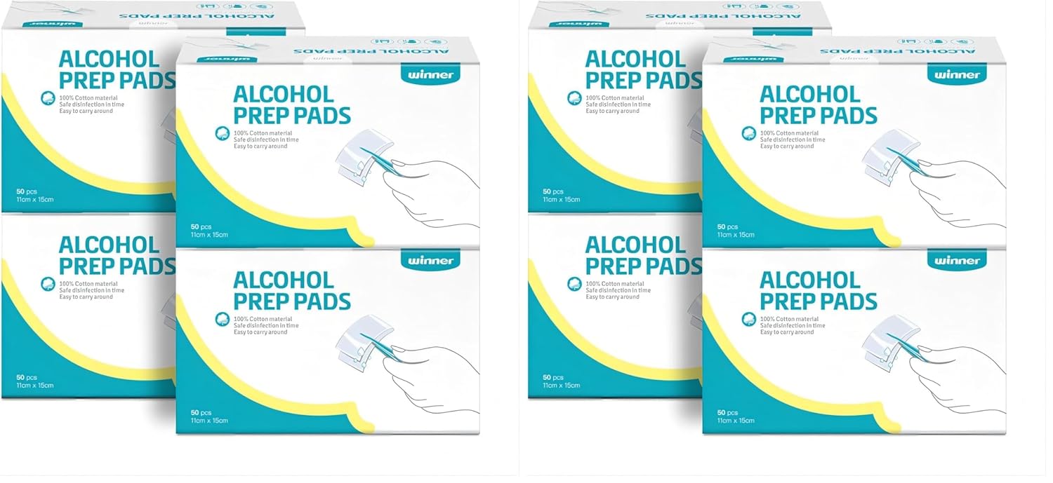 Winner Alcohol Prep Pads Winner Alcohol wipes are made of 100% natural cotton and saturated with 70%-75% isopropyl alcohol. The Package:Each alcohol pad is individually wrapped to keep it moist. The package is in a foil wrap so it provides an air tight seal. Count /Unit: 50 count /box. Unfolded Size: 6" x 4” (10 x 15 cm) Notice:Precautions: Not for children under 2 years. Please use with caution if allergic to alcohol. Winner Medical—Enjoy Healthy Life