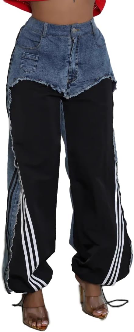 Hello! Welcome to Xadsfeel store ! Let every customer be satisfied and make our service commitment.Warm Tips:1. Please strictly follow the size chart to select the size. Do not select directly according to your habits.2.Still not sure about size? We'd love to advise based on your measurements of bust, waist and hip.3. The size may have 2-3cm differs due to manual measurement. Please note when you measure.4. Suggestion of cold water hand washing. It can help items keep their shape.Brand: XadsfeelType: Baggy JeansMaterial: 65% Cotton, 35% PolyesterElasticity Index: No ElasticitySeason: Suitable for All SeasonsOccasion:Casual daily wear, Going out, WorkPackage Content: 1 x Womens Wide Leg Jeans.♥ Meet the patchwork denim pants you’ll never want to break up with. This eye-catching stripes wide leg jeans is sure to turn heads wherever you go. Versatile enough to wear day or night, work or weekend. Be bold and jump-start your style with this straight leg jeans♥ Any other questions, please contact us freely.Our packages require cross-country shipping. After arriving in the United States, USPS is responsible for delivery.