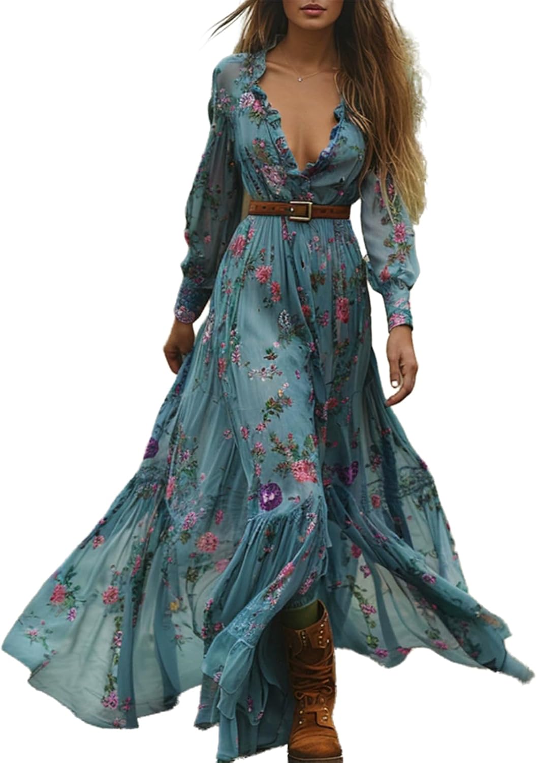 Discover the timeless blend of rugged Western charm and boho elegance in this vintage floral maxi dress. Features: Sharp suit tailoring: Long-sleeved design merges professional polish with romantic flair. Flattering V-neck: Enhances collarbones and shoulders for chic sophistication. Vintage Western details: Lace accents and A-line silhouette evoke rustic boho vibes. Easy styling: Seamlessly matches boots, jackets, or accessories for versatile looks. Fall-ready: Ideal for casual outings or formal Western occasions. Product Attributes: Fabric Name: Cotton Style: V-neck Main Fabric Composition: Cotton Craftsmanship: Printed Skirt Length: Maxi Skirt Style: Country Style Skirt Type: A-line Skirt Neckline: V-neck Package includes: Vintage country-style long dress Note: Due to packing compression, wrinkles may occur—simply iron before wearing to restore its flawless drapery