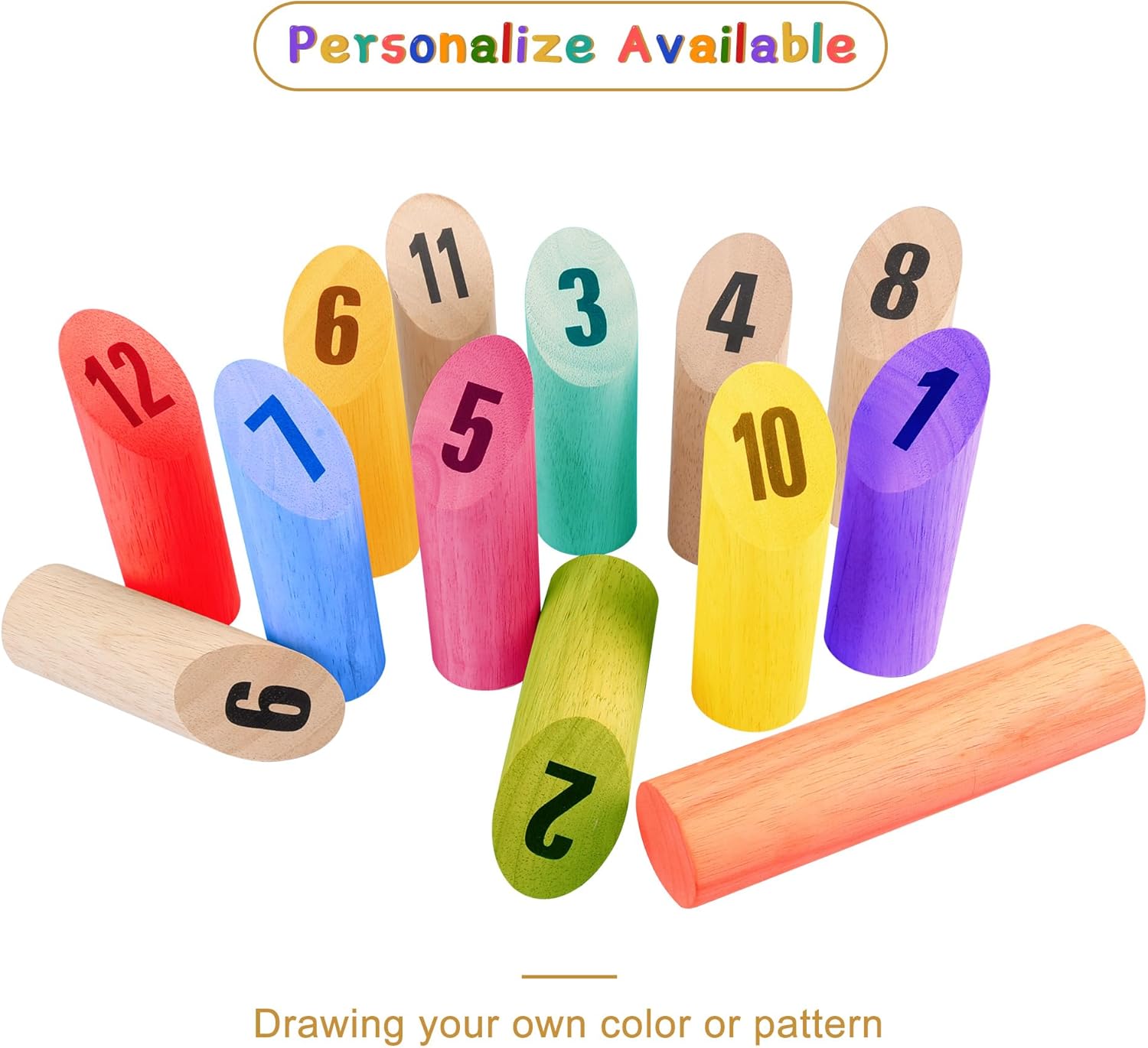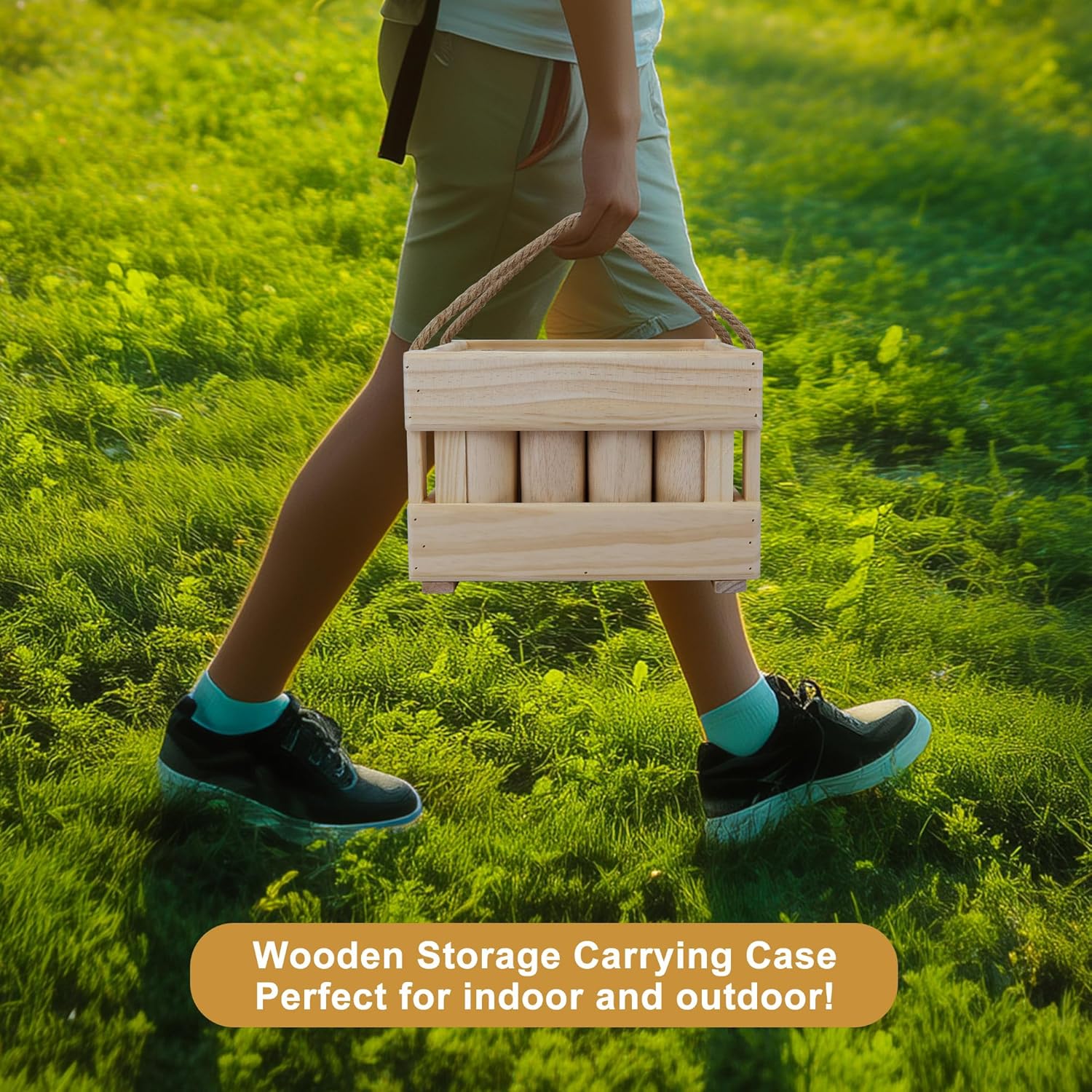 Included: Shaved Top Design numbered tossing block x 12 Throwing block x 1 Wooden storage case x 1